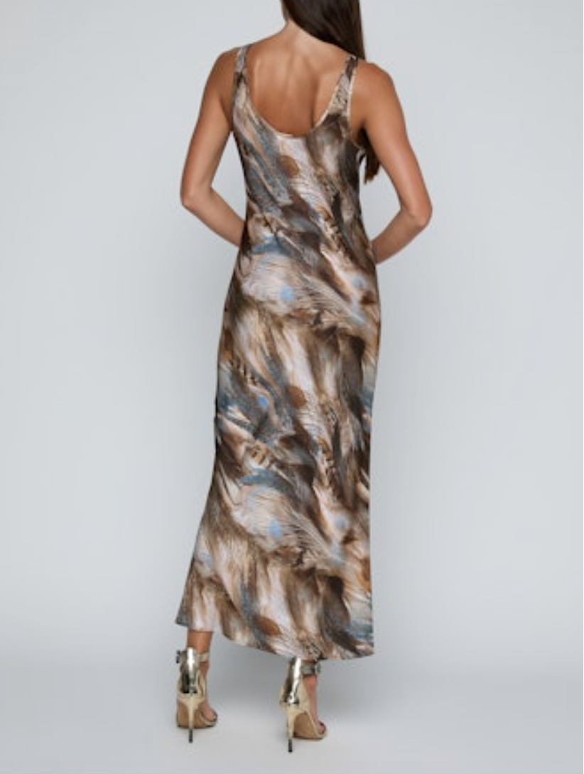 L'Agence Akiya Satin Tank Maxi Dress Neutral/Blue Feather Mix