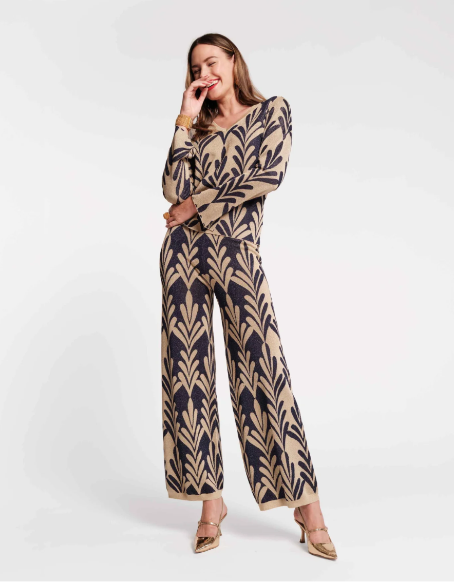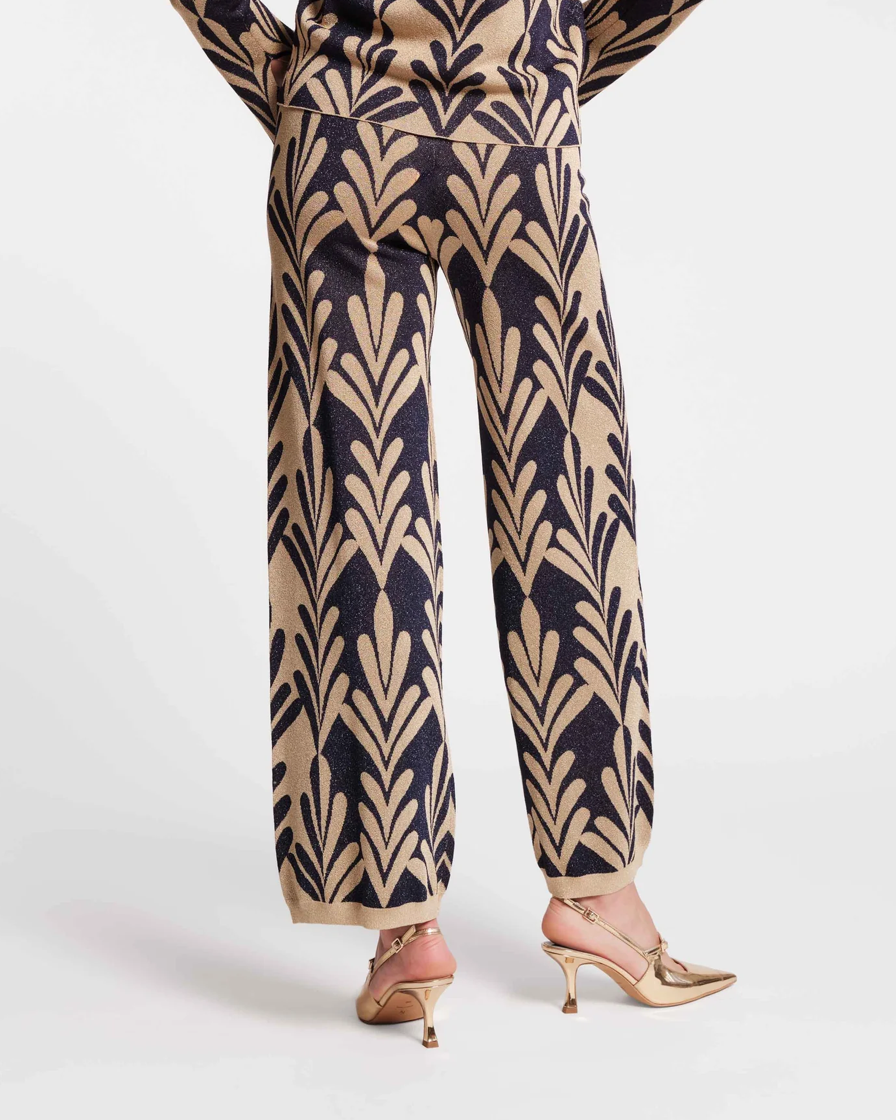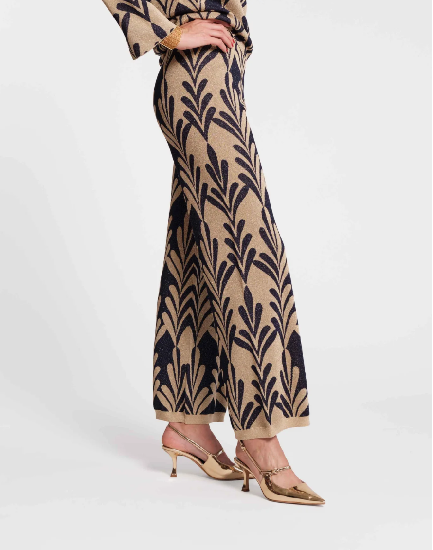 Frances Valentine Dakota Pant Royal Palm Knit Lurex Navy Gold