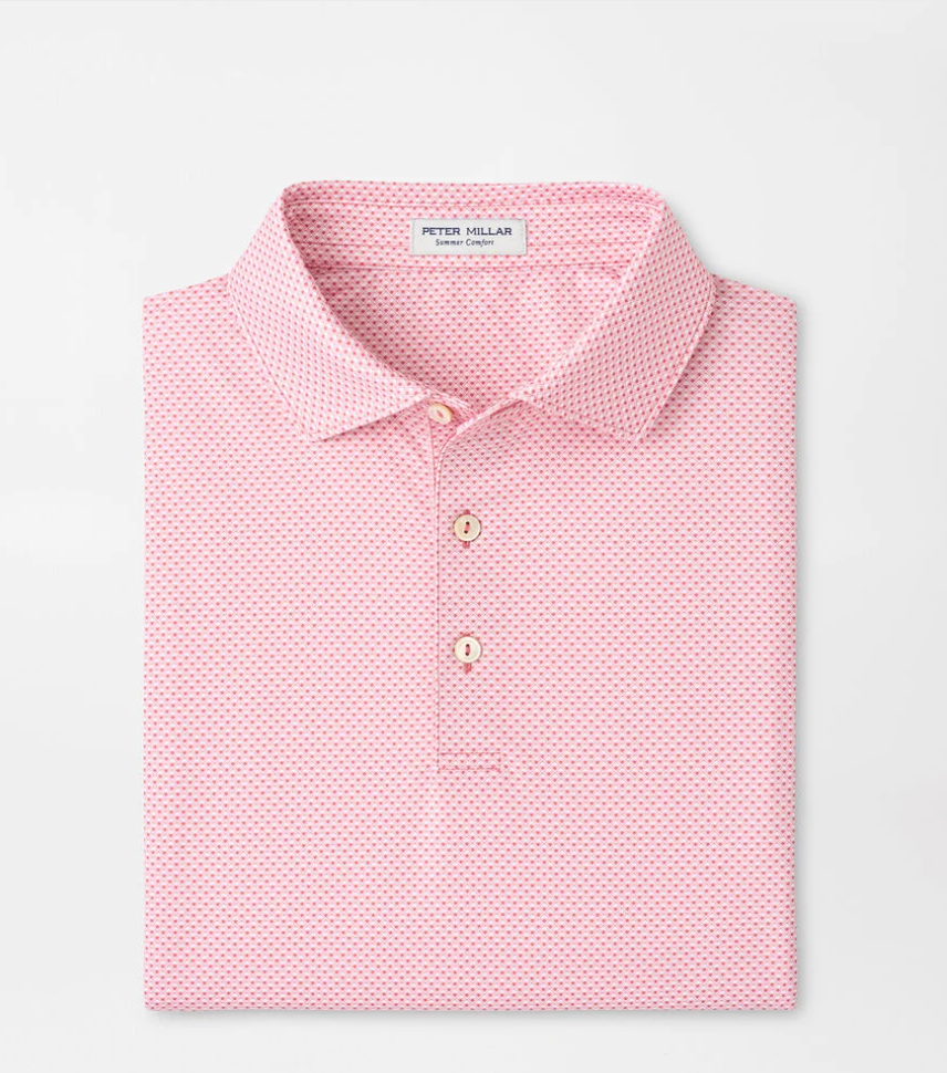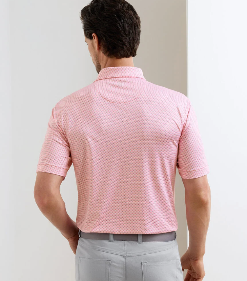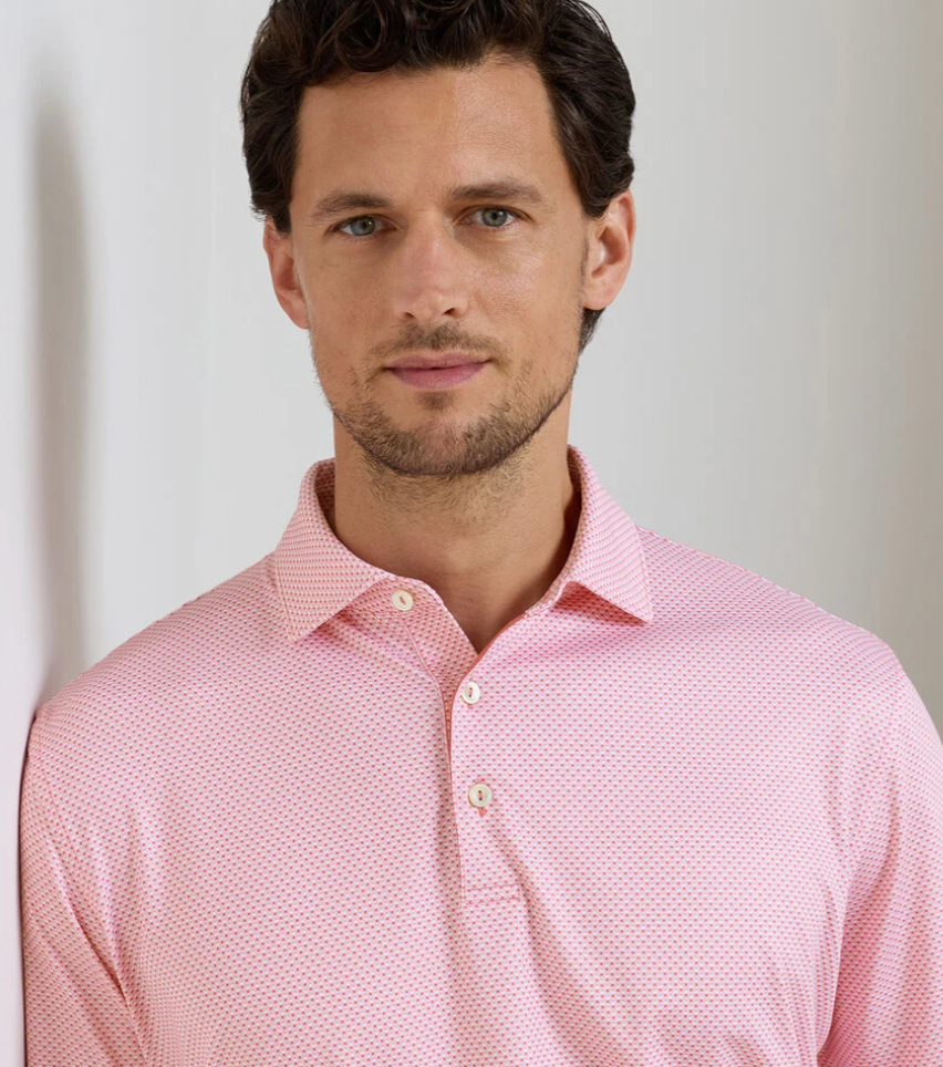Our Summer Comfort jersey polos are gold standards for softness and exceptional performance. These are packed with four-way stretch, wicking and UPF 50+ protection in our signature fabrication. This shirt features a custom-designed geometric print for added style. Finished with a spread collar and three-button placket.