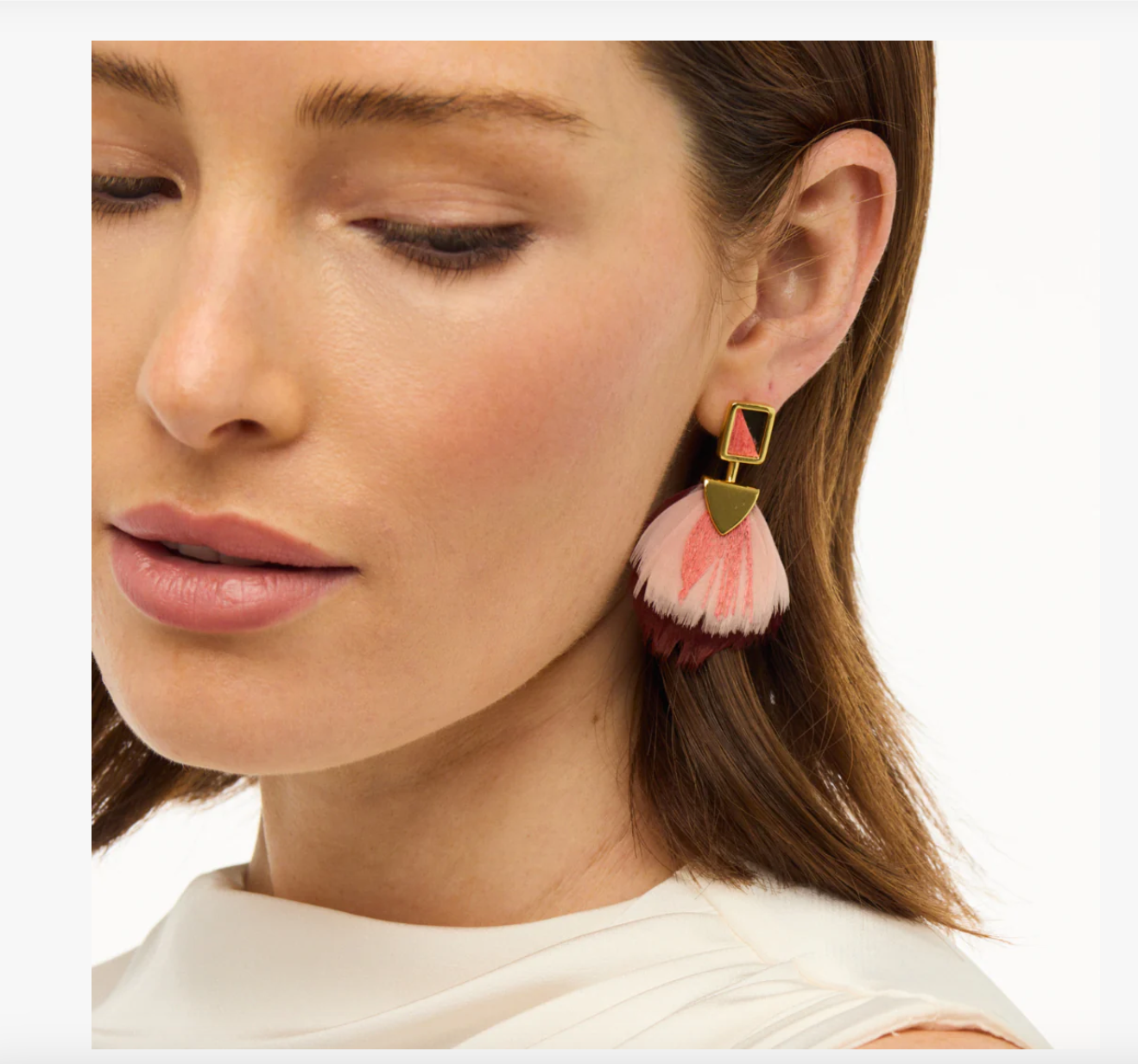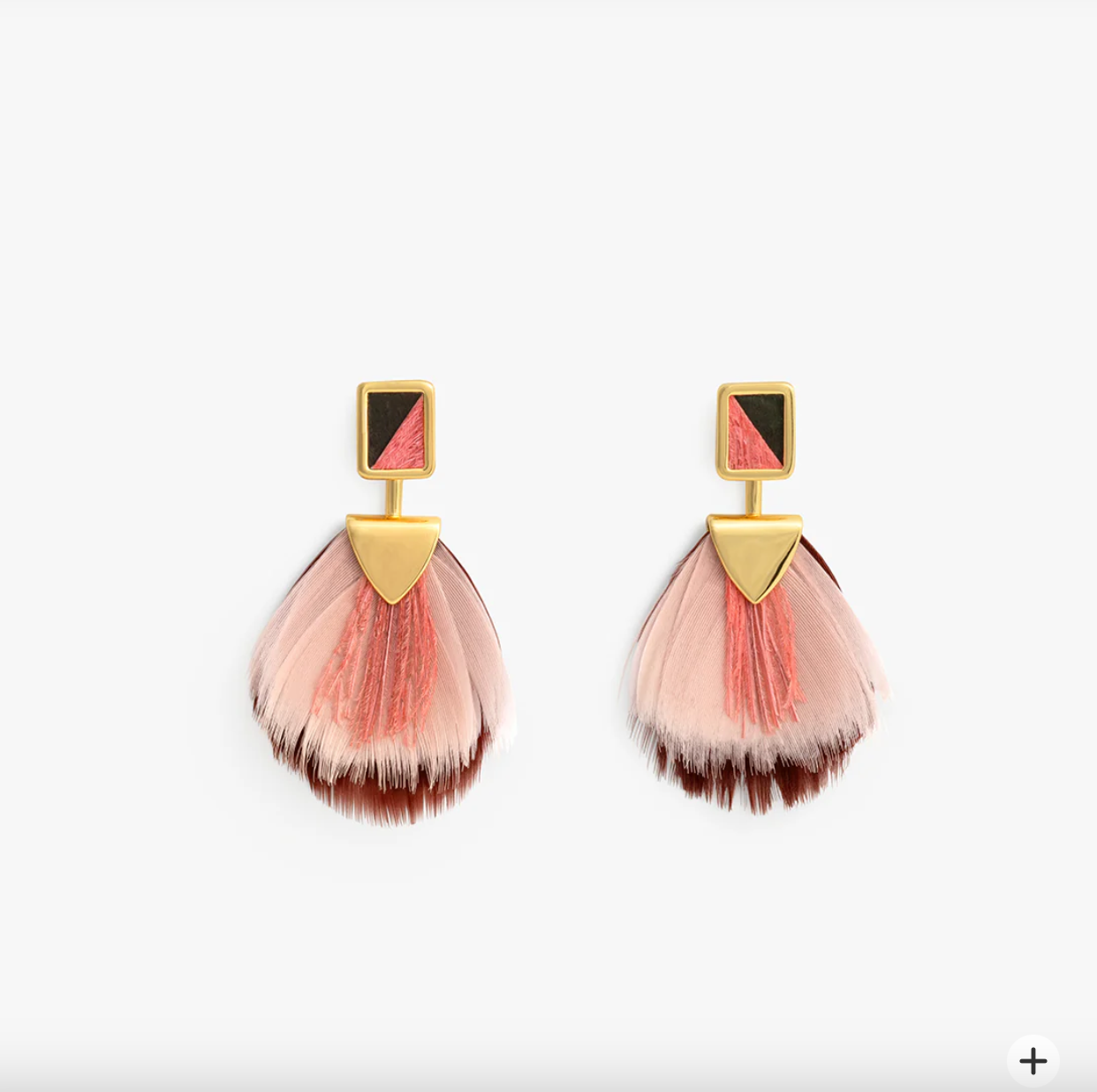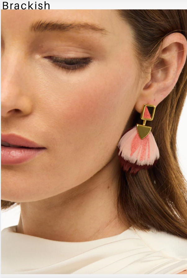 The Megan Statement Earring brings a bold yet playful touch to day-to-night dressing. Handcrafted with champagne- and rust–dyed goose feathers, accented by pops of coral peacock sword and grounded with green rooster feathers, the design delivers texture, movement, and just the right amount of flair. Finished in 18kt polished gold plating, Megan adds fluff, color, and unmistakable Brackish charm to any look.