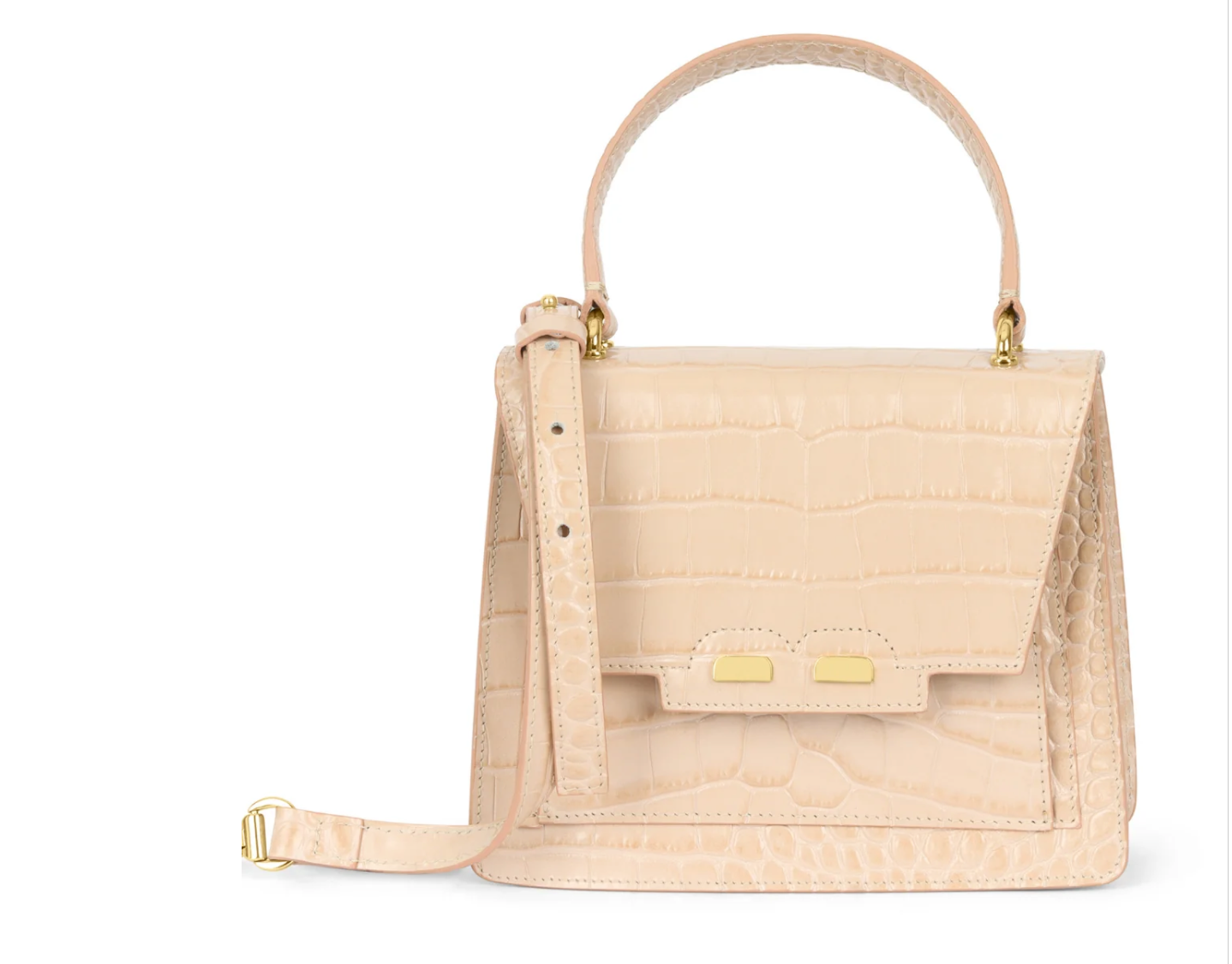 This sophisticated, handle bag is a powerful statement piece to be worn in a variety of ways, as the cross-body strap and gold chain are both removable.