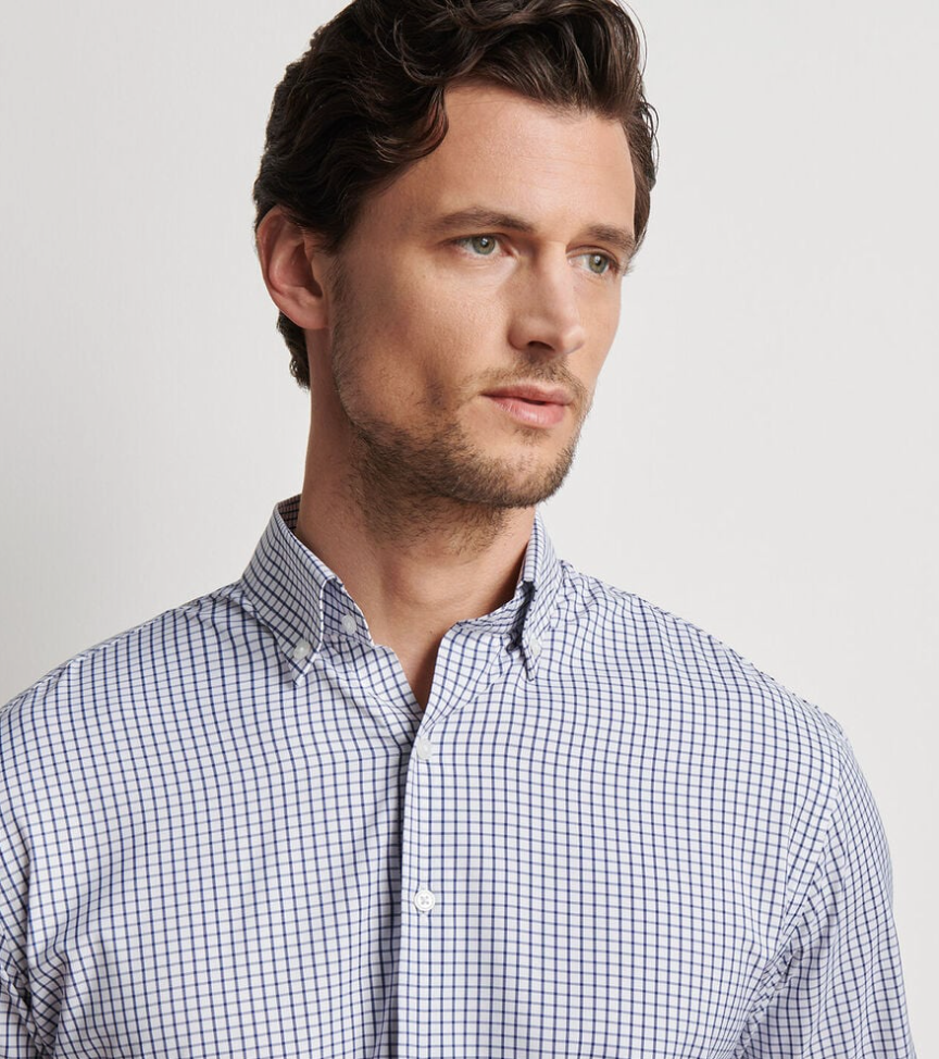 This sophisticated essential conveys the classic look of a twill shirt in a comfortable and versatile performance fabric. It features easy-care, two-way stretch, wicking and UPF 50+ sun protection. Designed with a classic check pattern, it's finished with a button-down collar and a French placket.