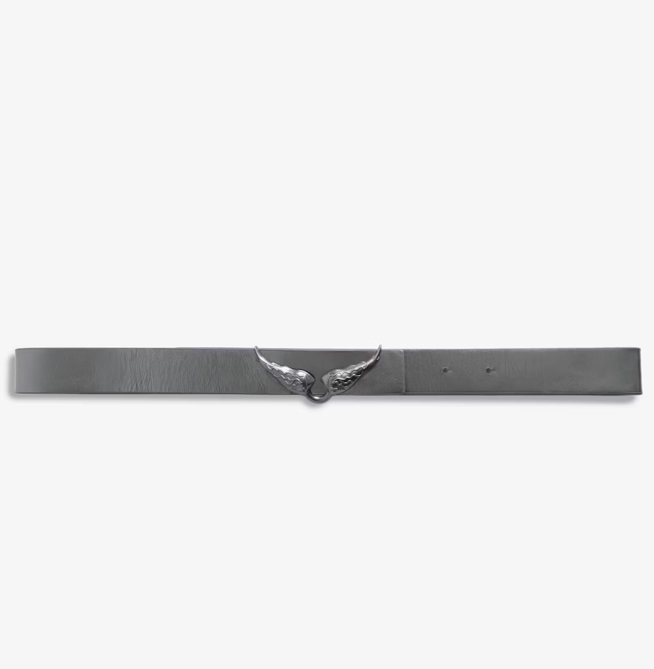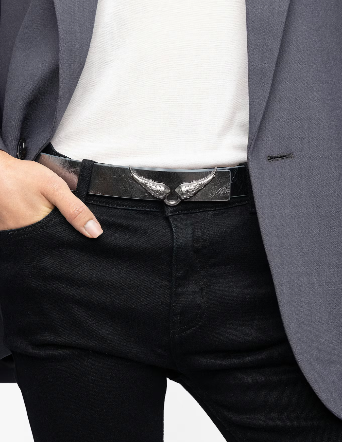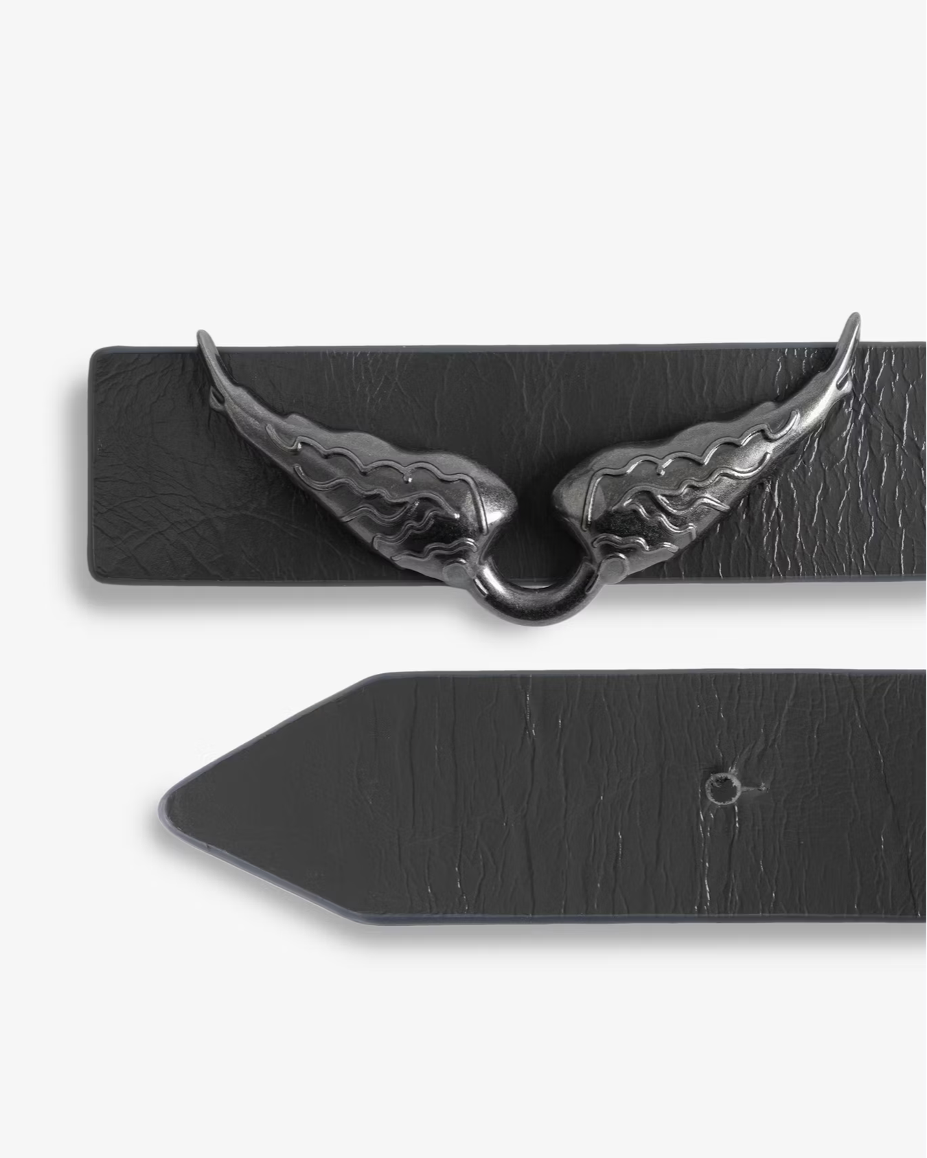 Reversible belt with 30mm width in vintage effect leather with wing-shaped buckle.
