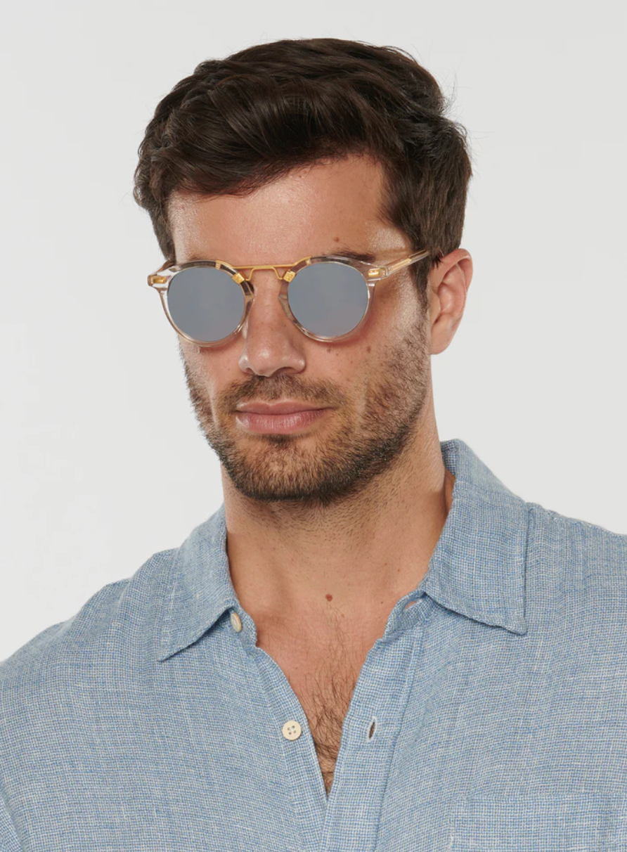 Our iconic classic. Inspired by the historic cast-iron balconies found in New Orleans’ French Quarter, the ST. LOUIS’s rounded silhouette complements every face shape while its distinct brow and mirrored lenses upgrade y’alls everyday uniform. Easy wear is a given with sturdy-yet-comfortable supports at the nose and temples.