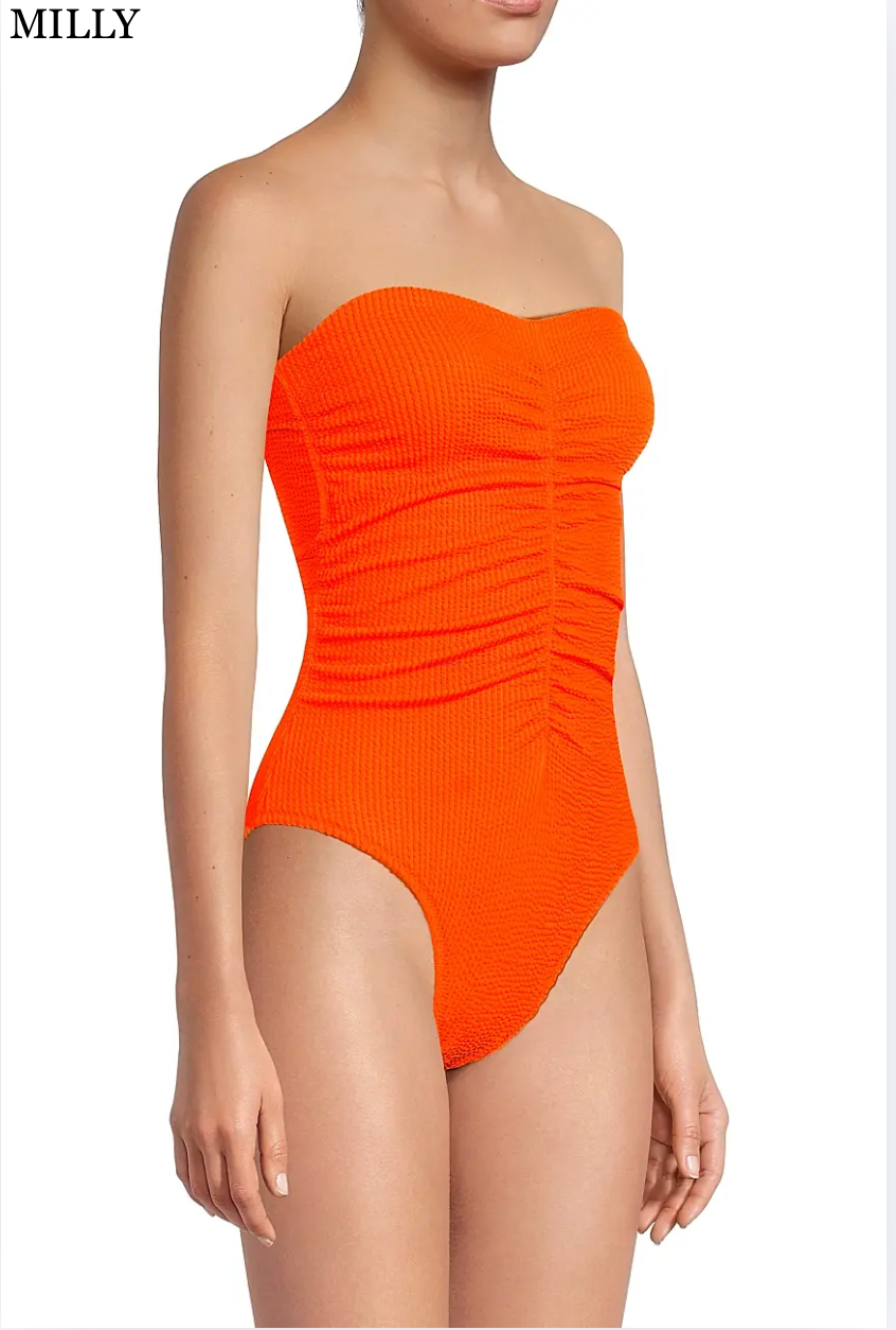 Milly Textured Ruched One Piece Neon Orange