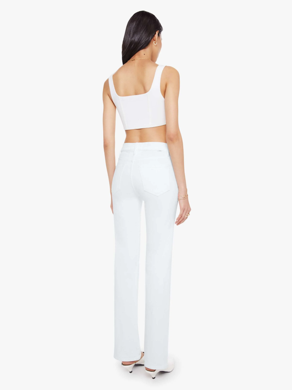 An expanded collection of foundational pieces designed for All Day, Every Day. Created for versatility, layering, and year-round wearability, these are the pieces you will never stop reaching for. A high-rise straight leg jean with a zip fly, 32-inch inseam and a clean hem. Cut from semi-rigid SUPERIOR denim, Totally Innocent is a classic white with tonal hardware.