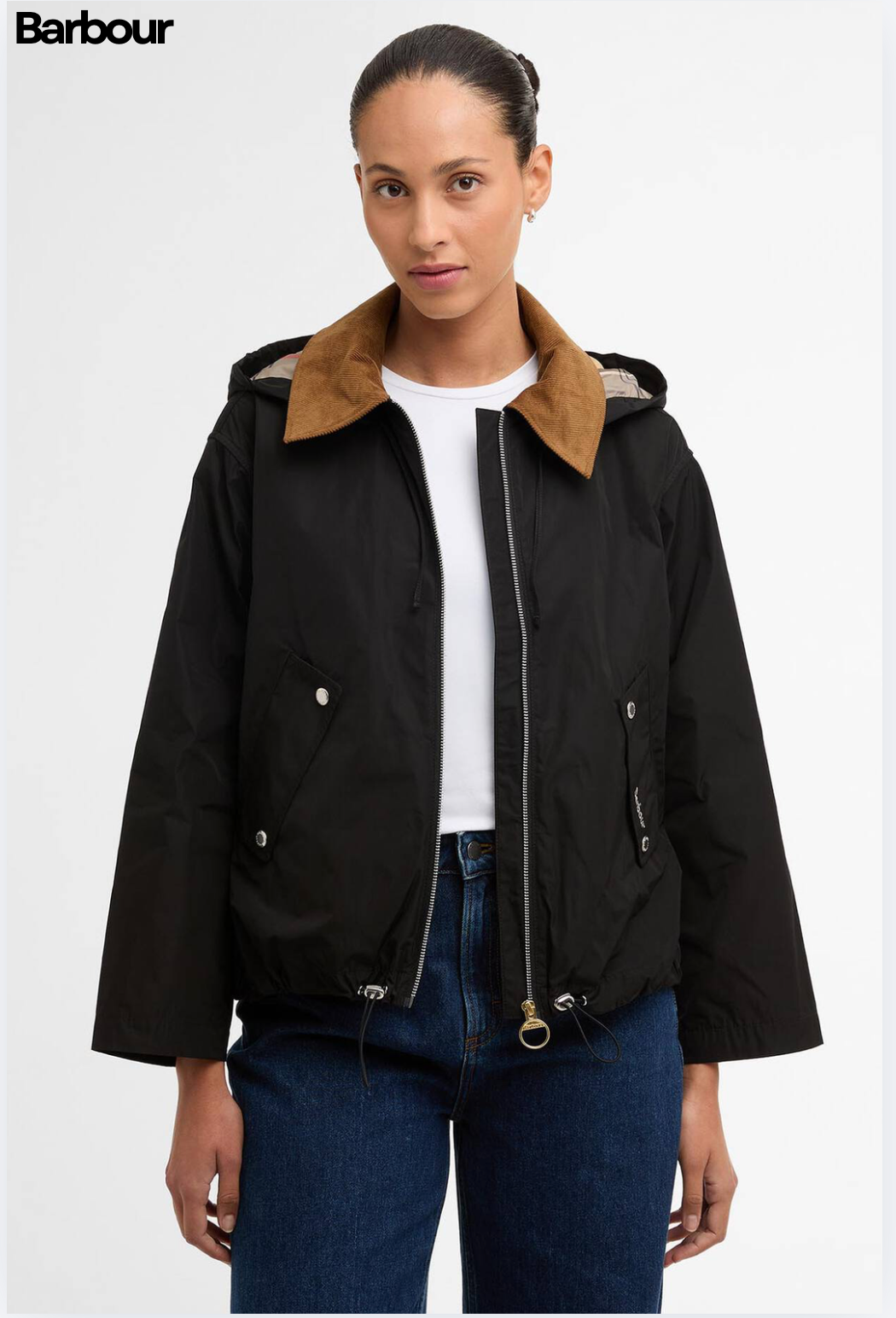 The Barbour Weaver Showerproof Jacket combines practicality with signature Barbour style. Designed with a cord collar and detachable hood, it offers versatile protection against light rain. Featuring a silver metal zip with an oversized ring-pull zip, studded flap pockets, and a tartan detail to the inner hood and lining, this jacket blends heritage detailing with contemporary functionality.