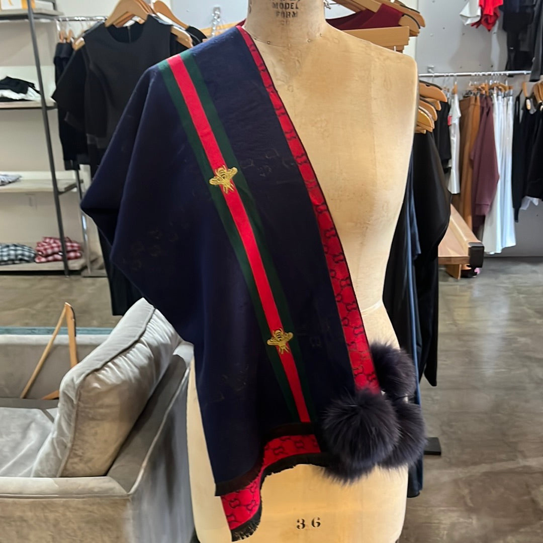 Mitchie's Women's Scarf Navy W Bees and Fox Poms