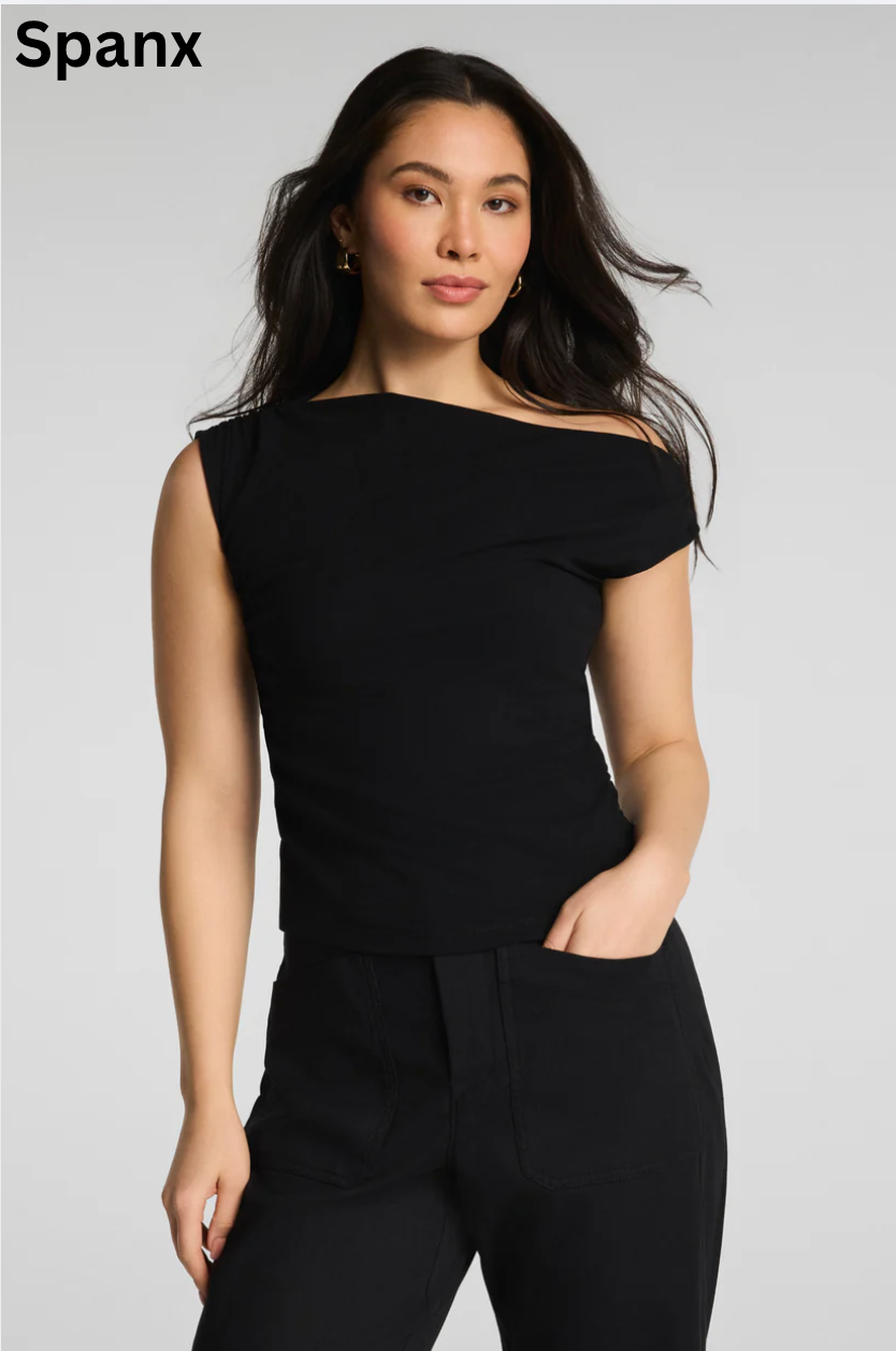 Elevate your everyday with our SPANX® Ribbed Knit Ruched Off-The-Shoulder Top. Made from ultra-soft, ribbed knit fabric with romantic, on-trend details, this top is the perfect staple piece to style with your favorite SPANX jeans, ponte pants, and everything in between.