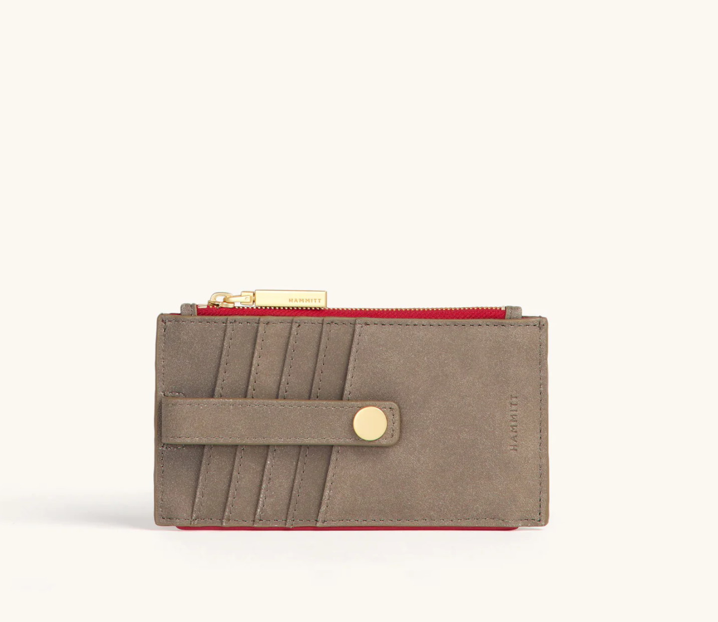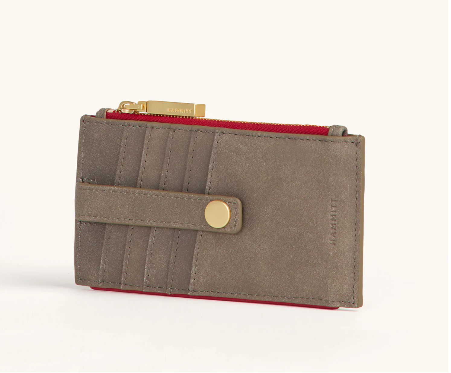 Hammitt 210 West Wallet Pewter Brushed Gold Red Zip