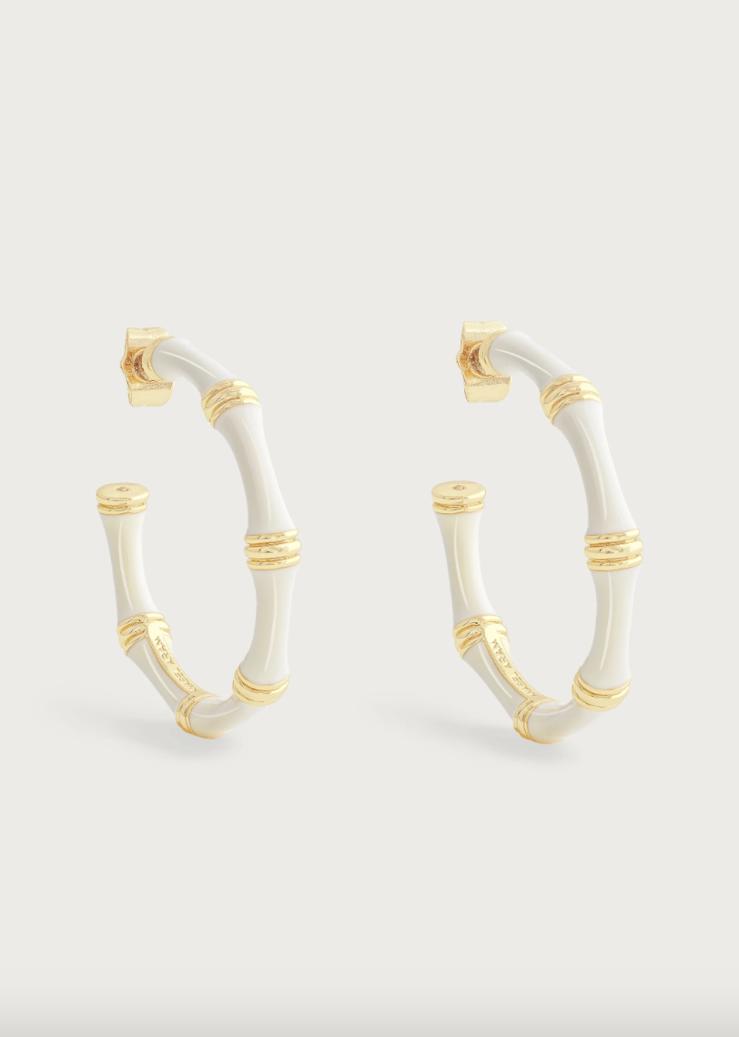 Anabel Aram Jewelry Enameled Bamboo Hoop Earring Cream