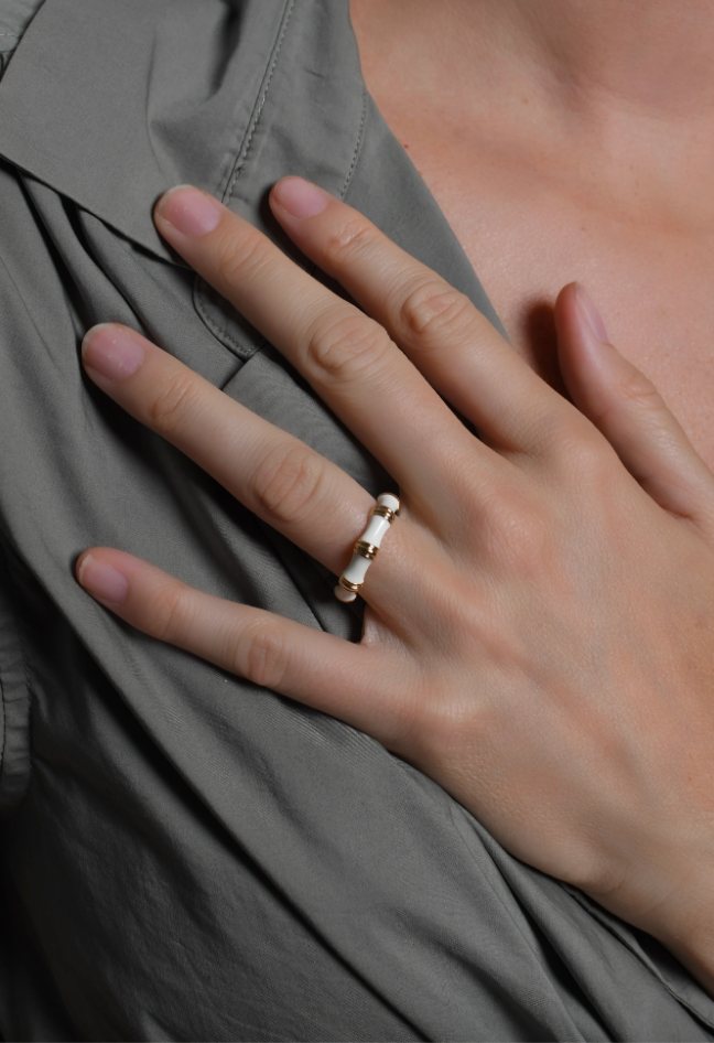 Anabel Arams Jewelry Bamboo Enameled Ring Cream