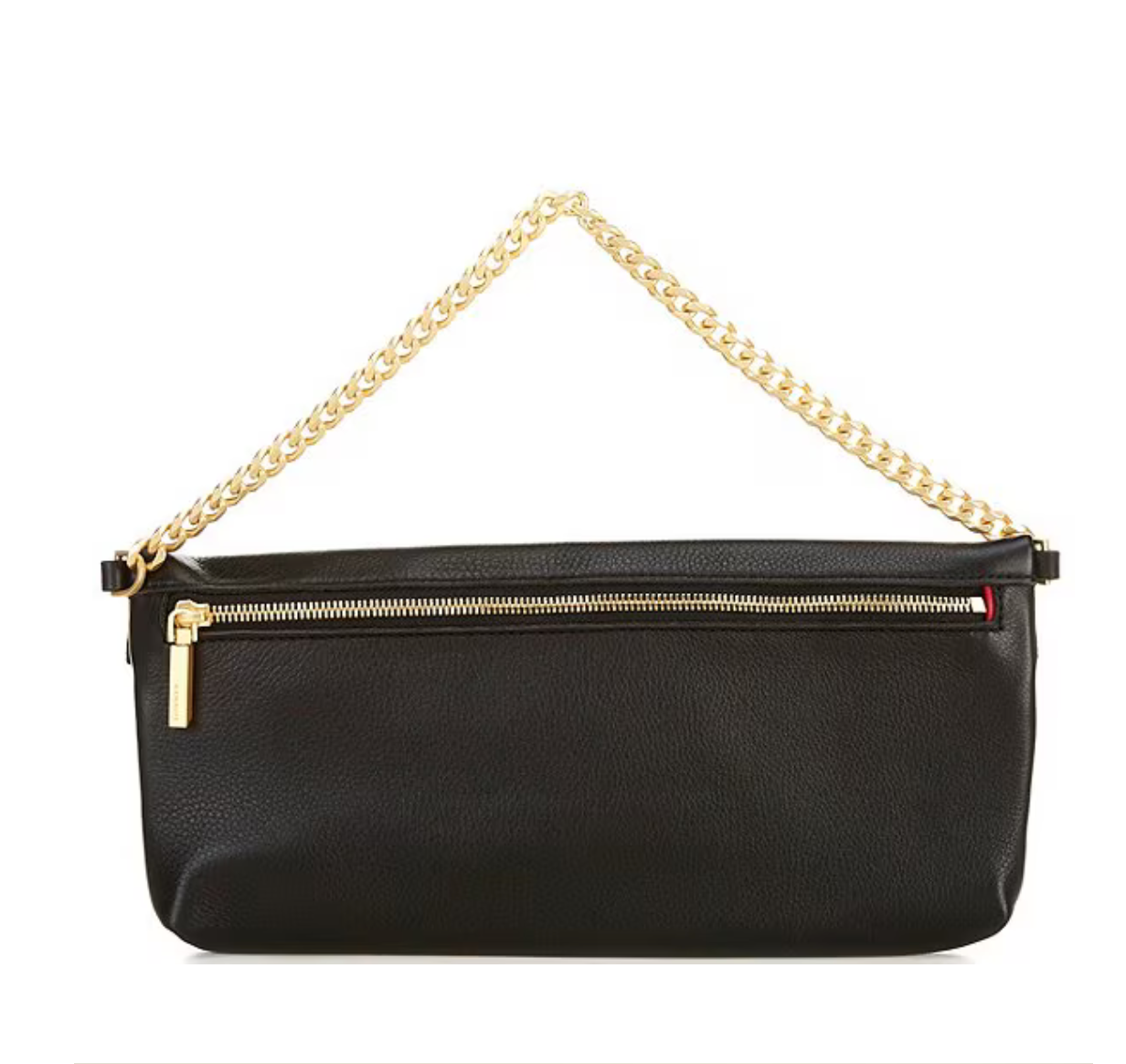 • Exterior: Hammitt droplet snap closure, metal chain, front facing rivets, zippered main compartment