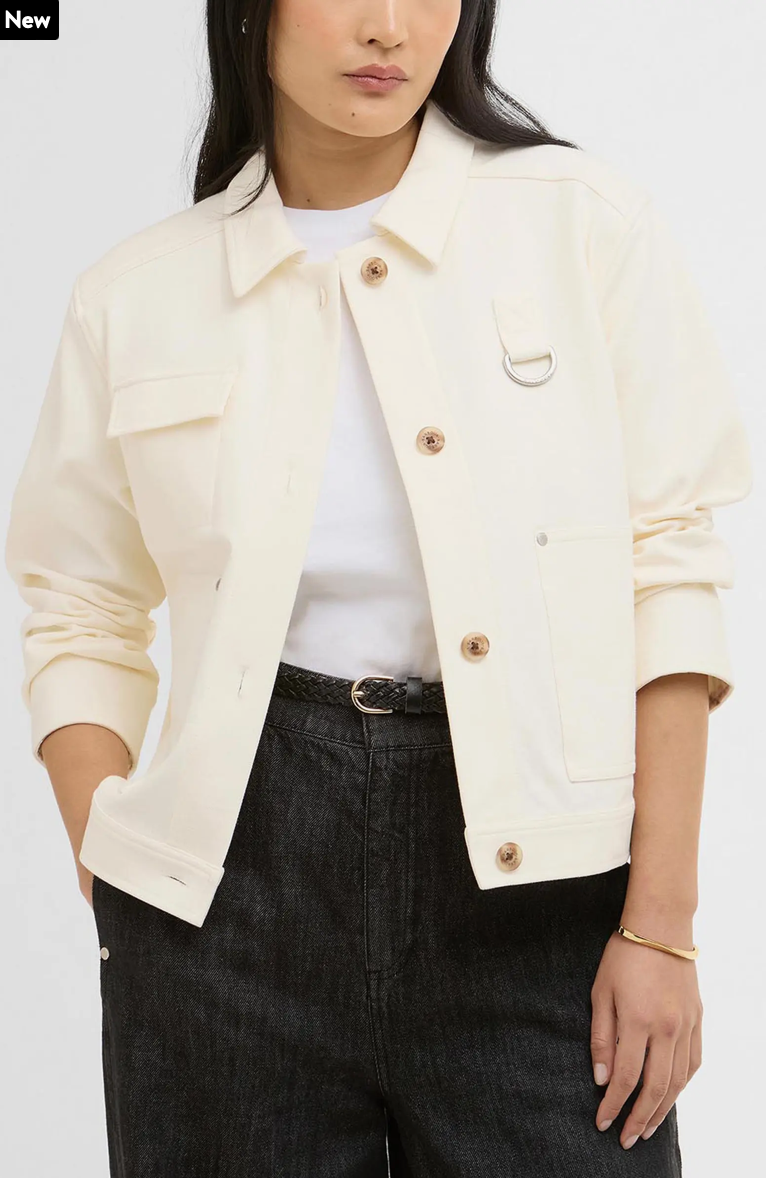 Roomy pockets and polished hardware nod to the workwear inspo of this overshirt cut for a boxy, layer-ready fit from a soft cotton-rich knit.