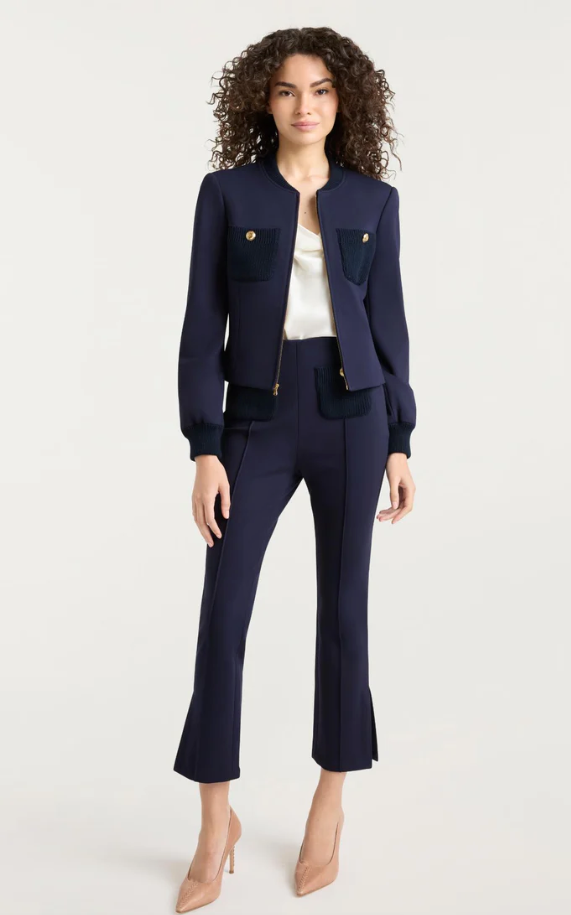 The Paulette Jacket is a sophisticated layering essential designed for modern versatility. Its front zipper closure, refined knitted neckline and cuffs, and front buttoned pockets deliver both style and practicality. Perfect for building polished looks that transition seamlessly from work to casual weekend.