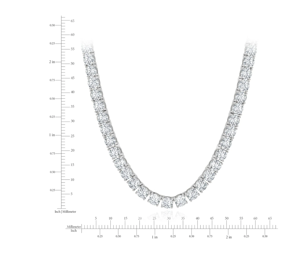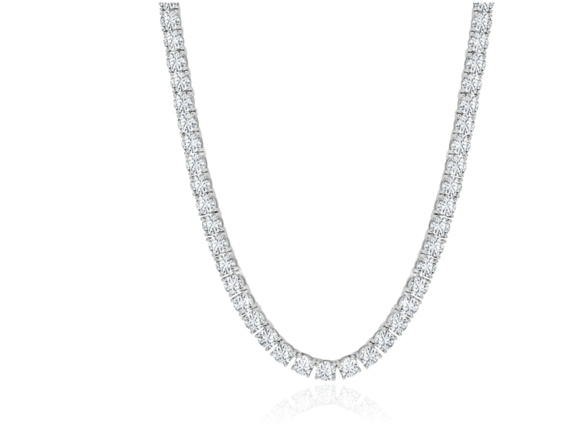This classic tennis necklace features 4mm round cut cubic zirconia for a total weight starting at 23.35 carats for the 16", and up to 37.50 carats for the 24". This necklace is crafted in .925 sterling silver finished in pure platinum, with flawless handset cubic zirconia. CRISLU jewelry is 100% hypoallergenic.