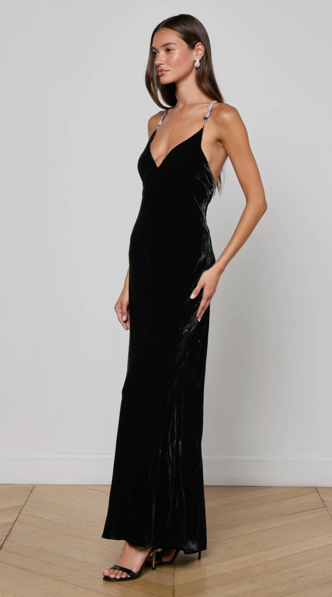 L'Agence Saint Velvet Beaded Strap Gown Black