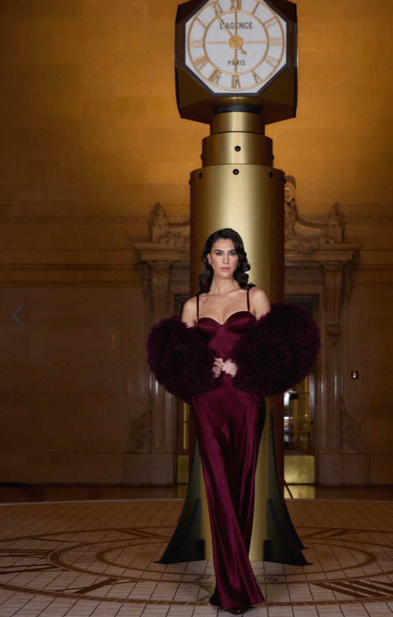 This style was featured in our Fall '25 NYFW presentation. The Sayla silk gown melds vintage glamour and modern sophistication. Constructed with molded cups secured by a traditional hook and eye closure, this event-ready style offers a secure, supportive fit. Now in rich maroon.