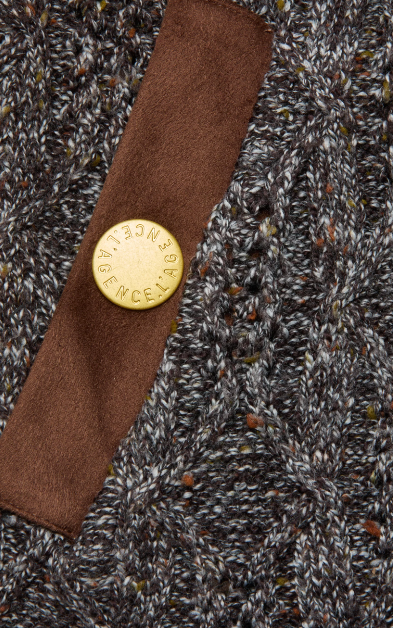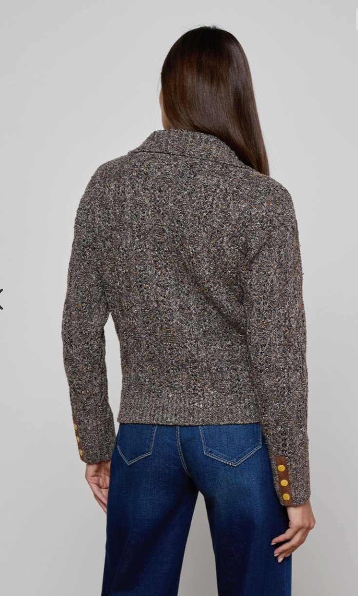 L'Agence Shiloh Suede Trim Cable Cardigan Carafe Brown