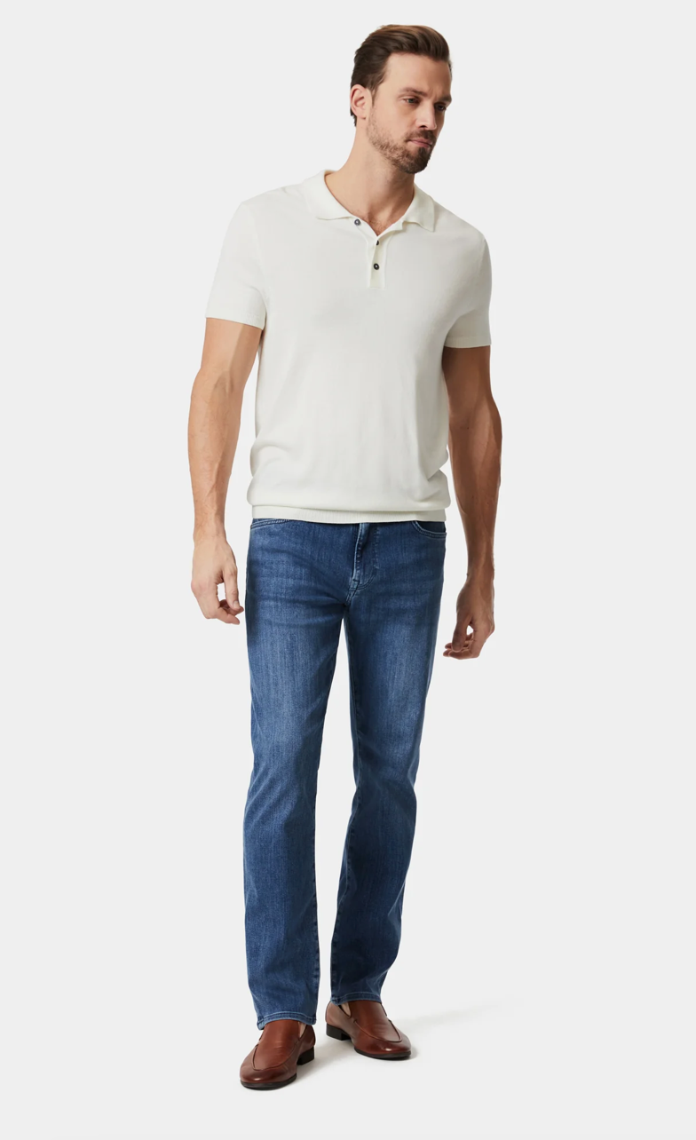 A contemporary fabrication complements the classic styling of this higher-rise, straight leg jean. They are cut from premium stretch denim that has a distinguished, modern appearance in a versatile wash to easily transition from casual to semiformal. Designed with comfort and effortless wear in mind, these have a relaxed fit through the leg that’s tailored to eliminate excess fabric at the hip and thigh.