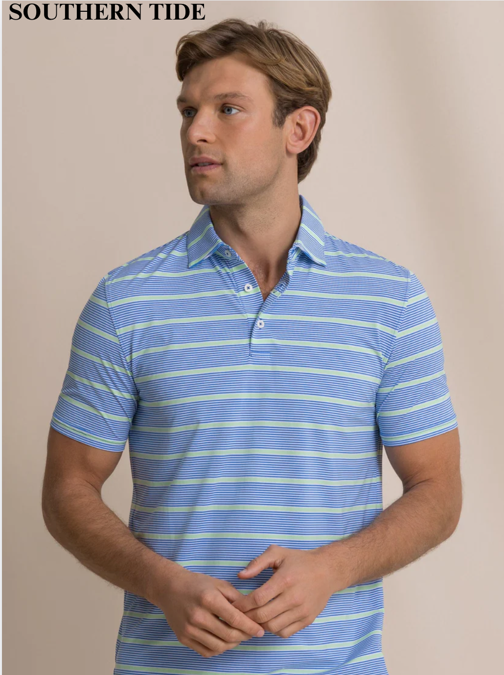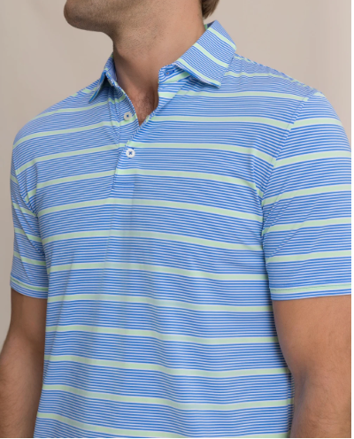 Southern Tide Coastal Breeze Core Sound Stripe Polo Blue Stream