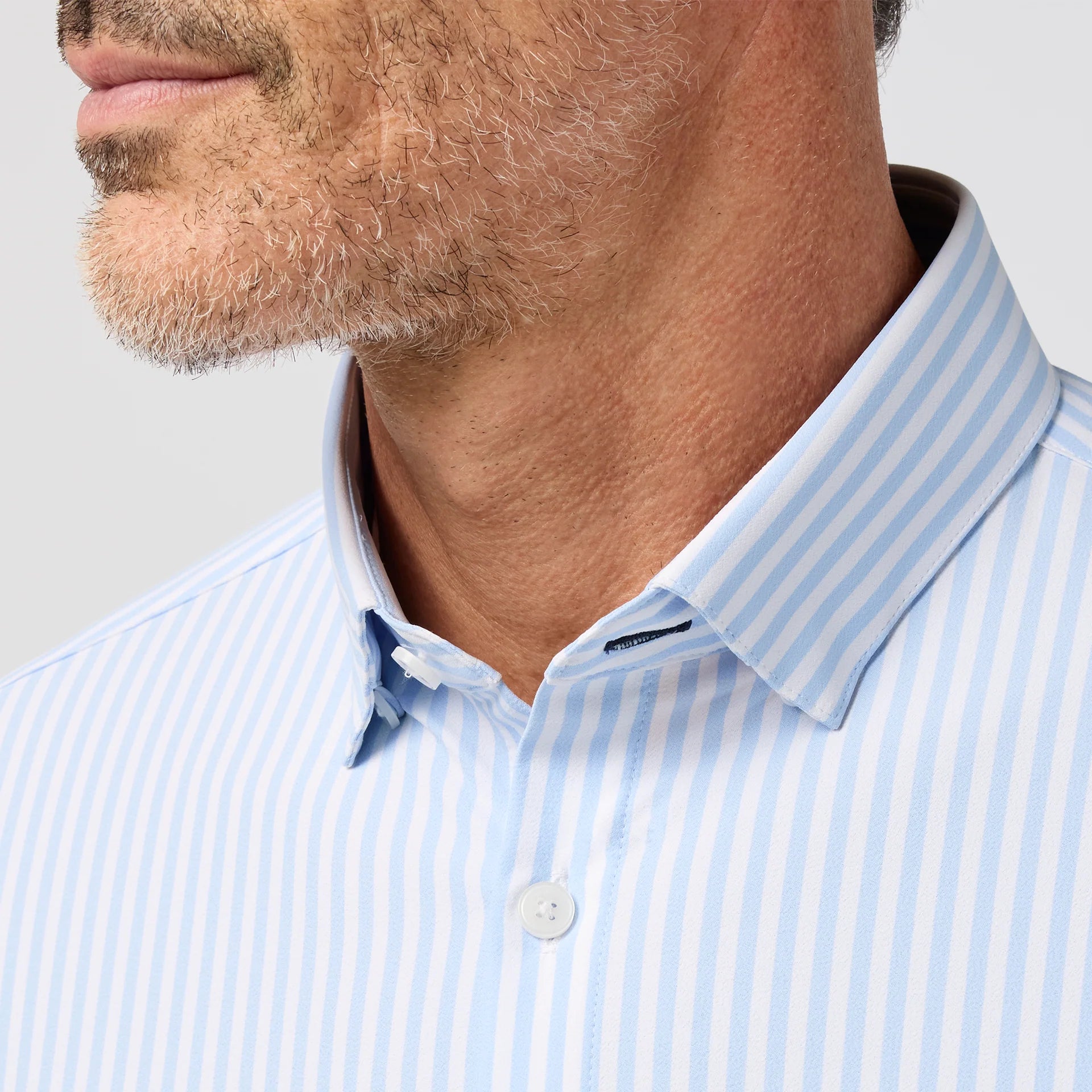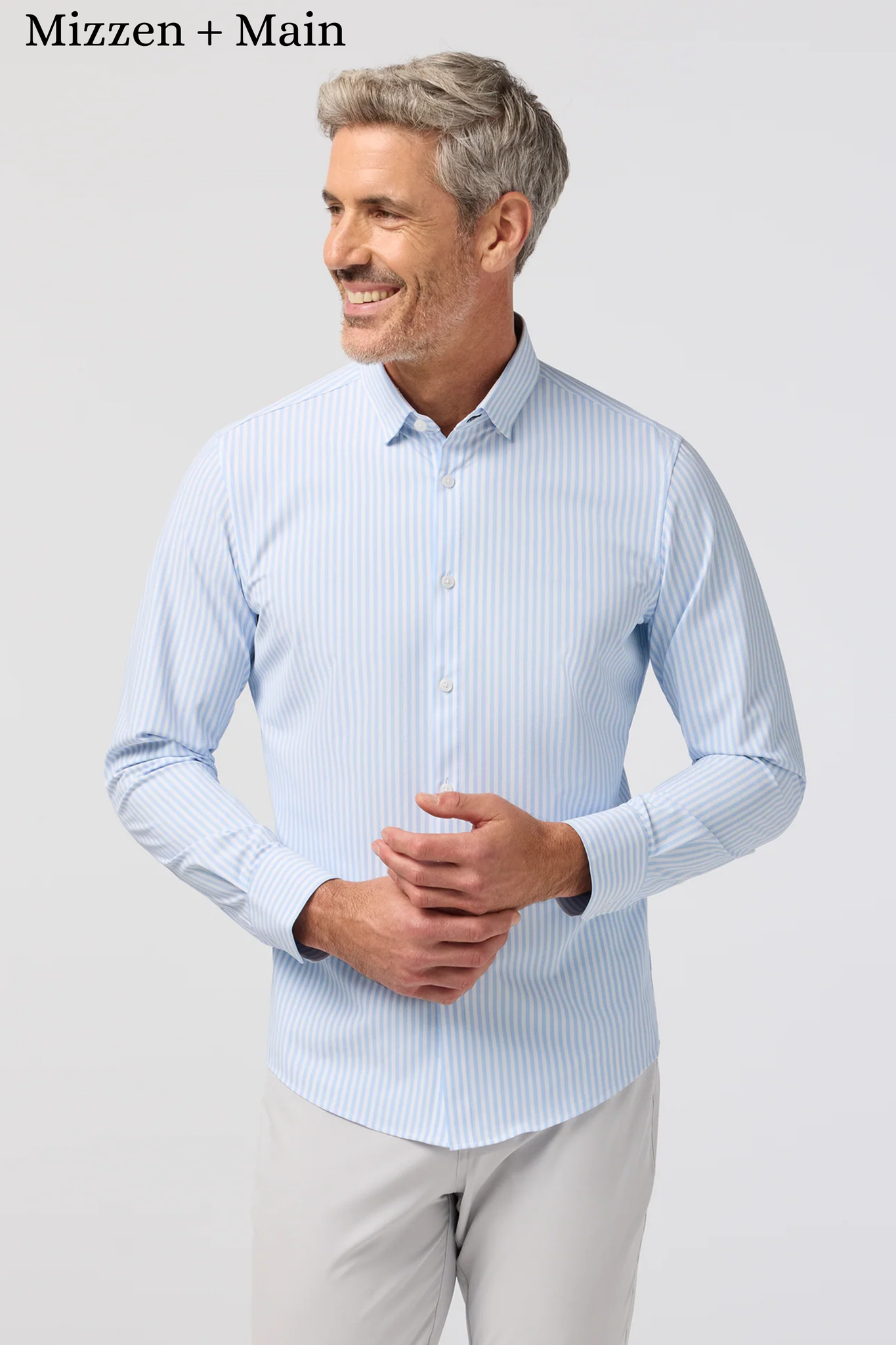 Mizzen + Main Leeward No Tuck Dress Shirt Cloud Blue Bengal Stripe