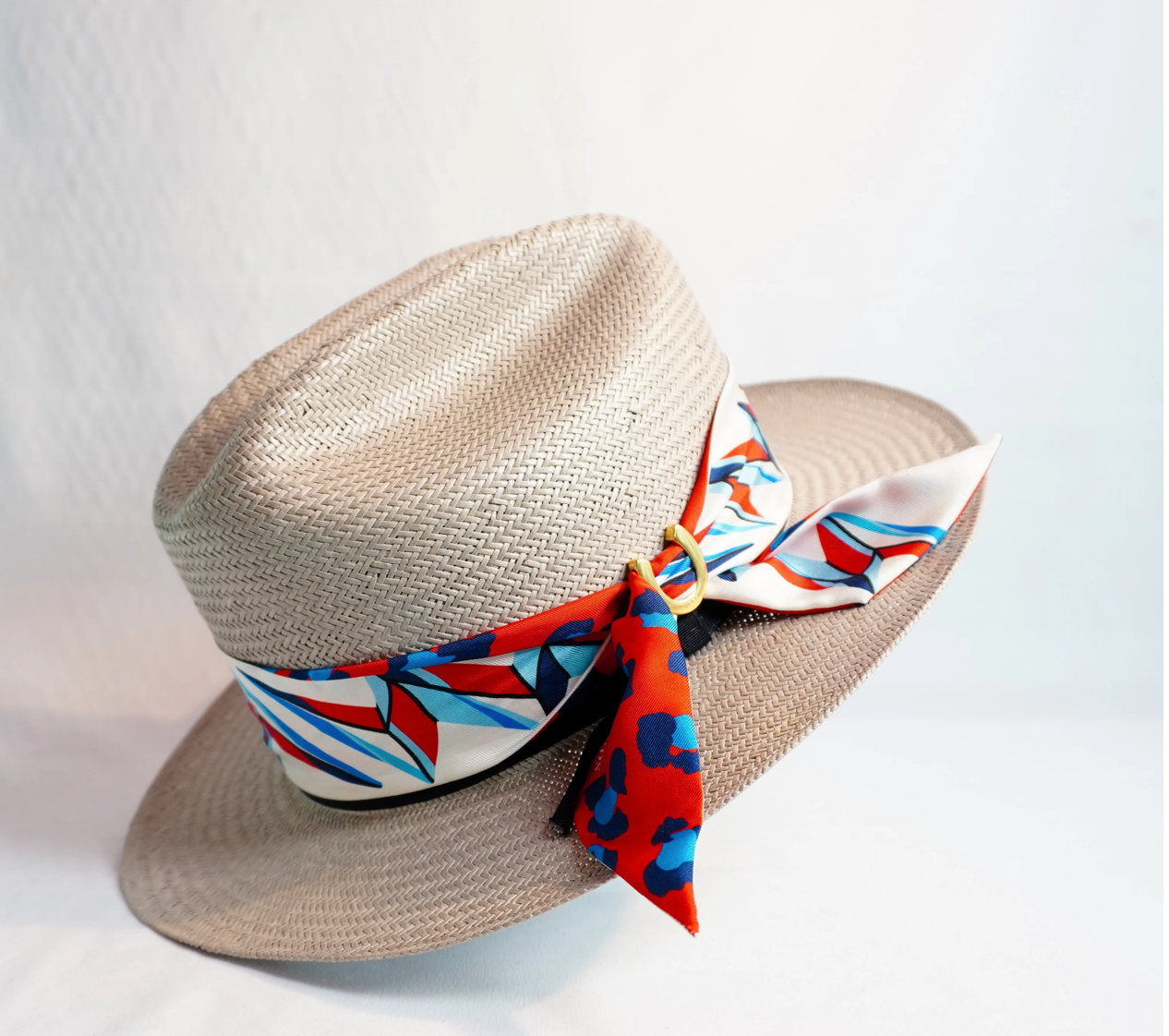 Wear it tied traditionally, looped with the ring, wrapped around your wrist, styled on a handbag, or woven through a hat — designed to move with your creativity.