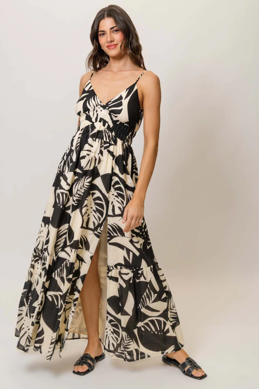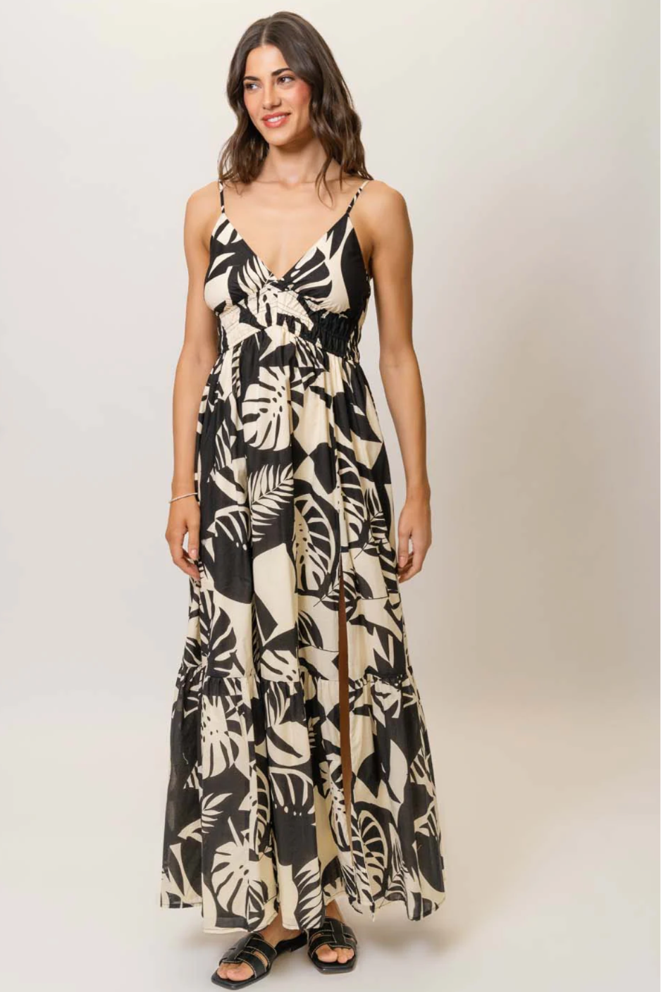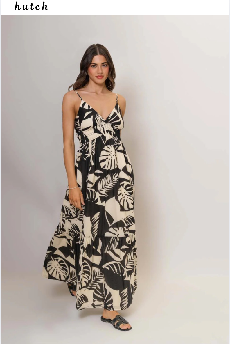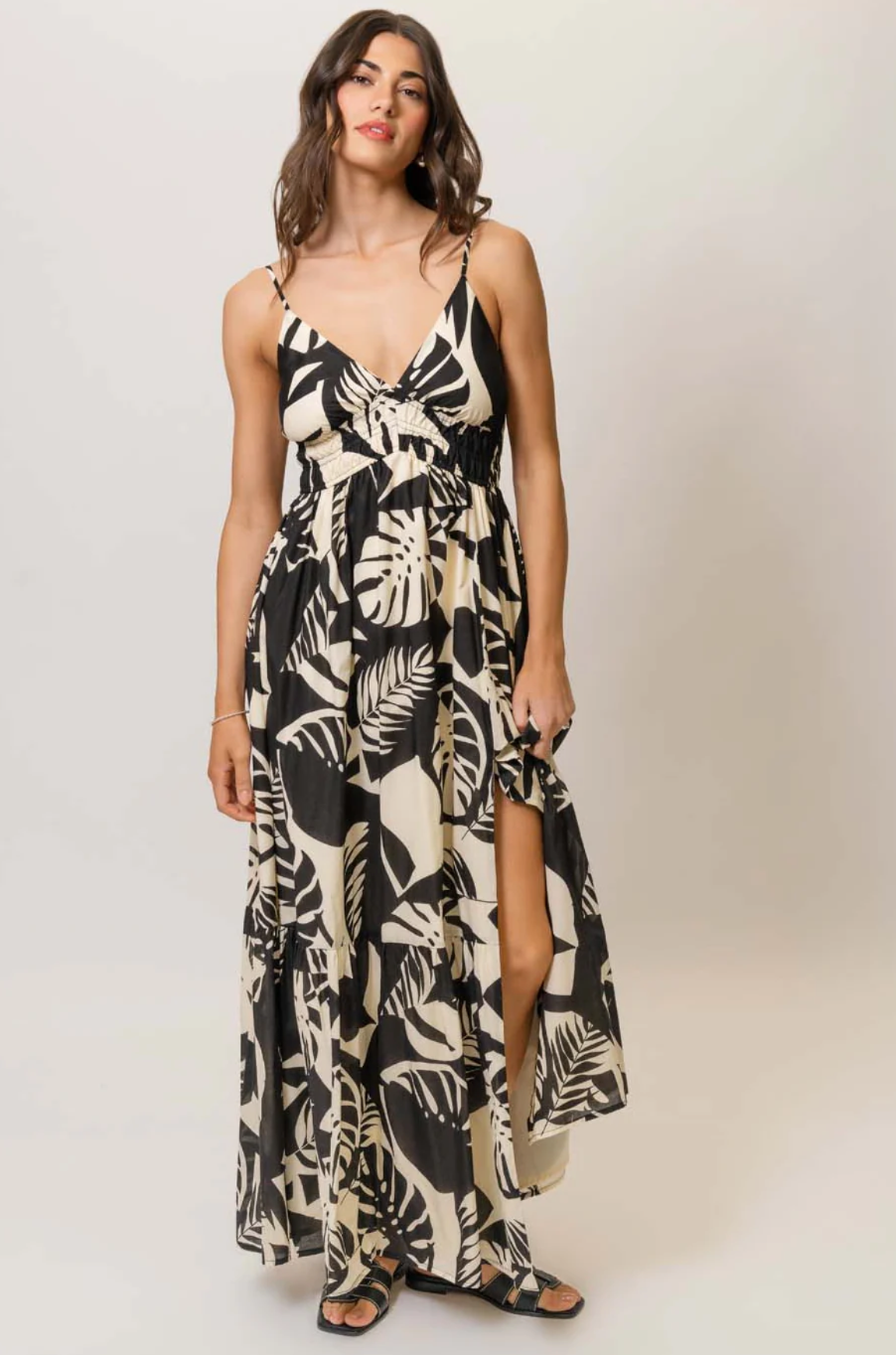 Hutch Flores Maxi Dress Abstract Tropical Black/Ivory