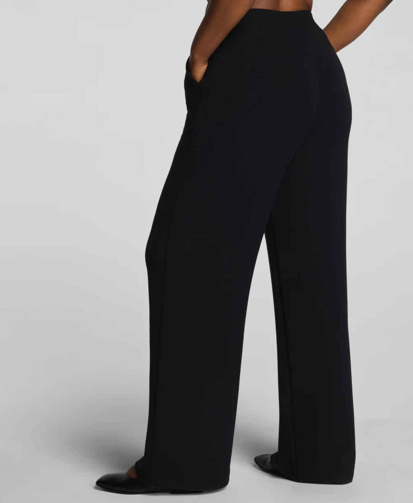 Spanx Airessential French Ribbed Wide Leg Pant Black