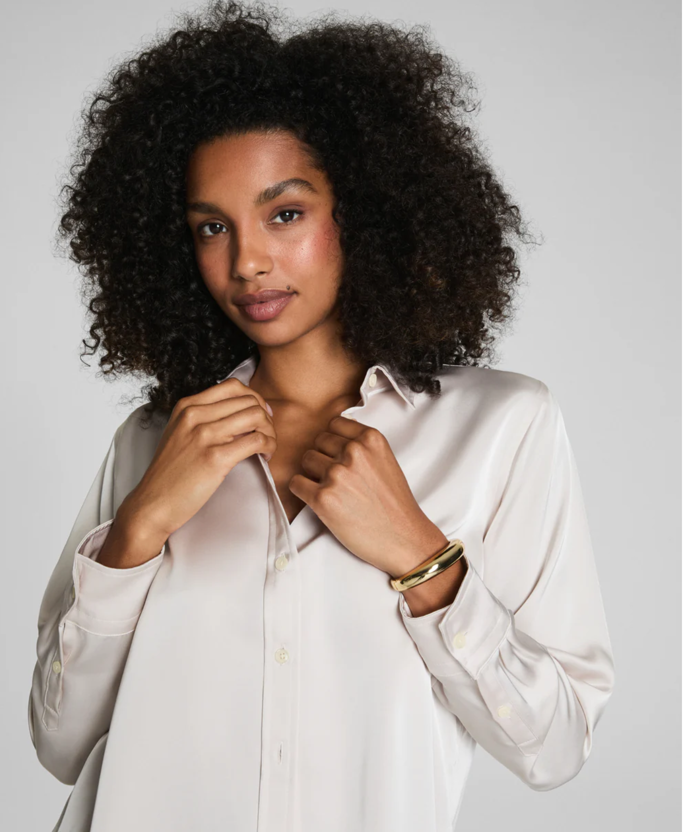 Spanx Better Than Silk Buttondown Top Earth Birch