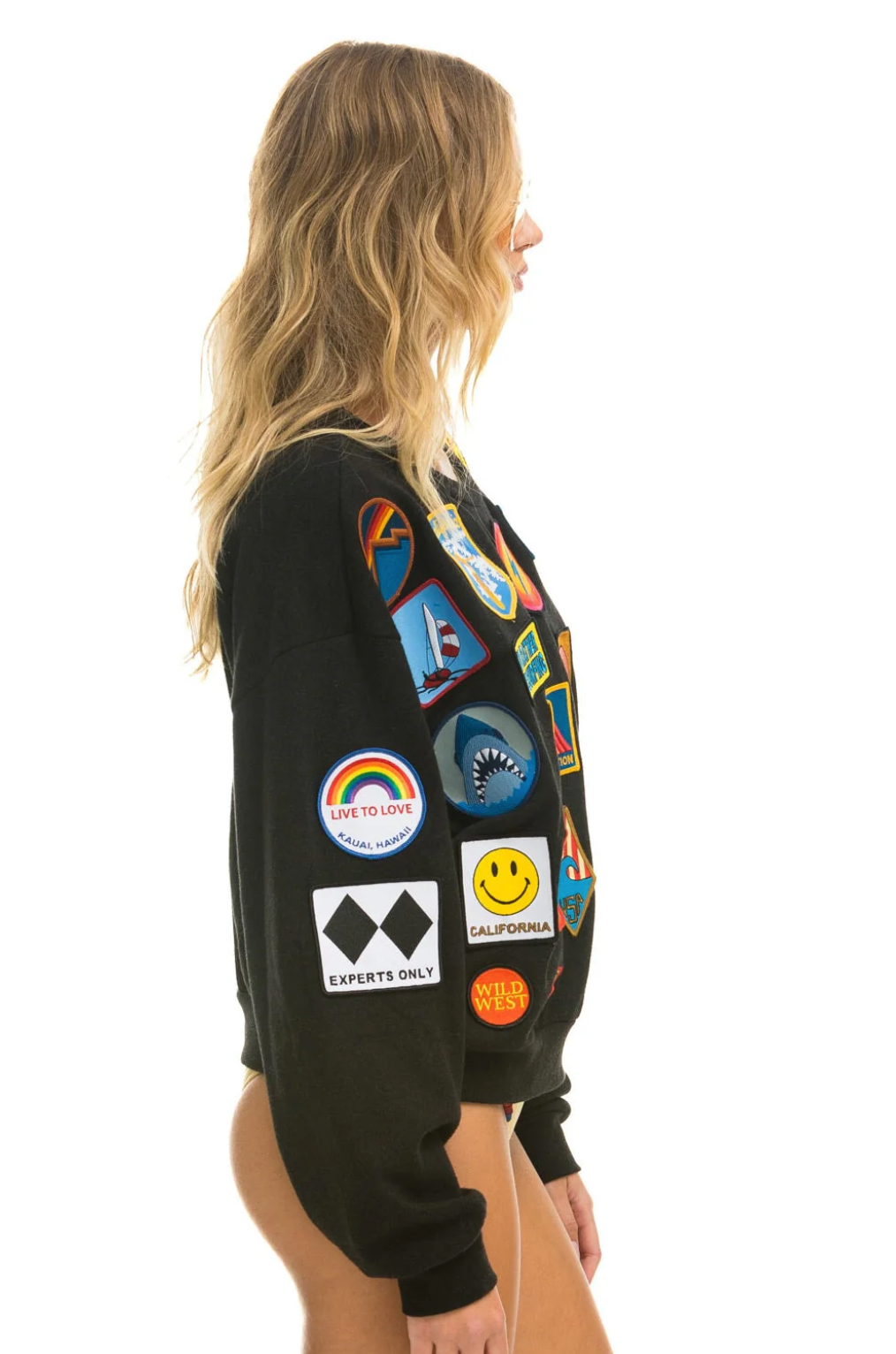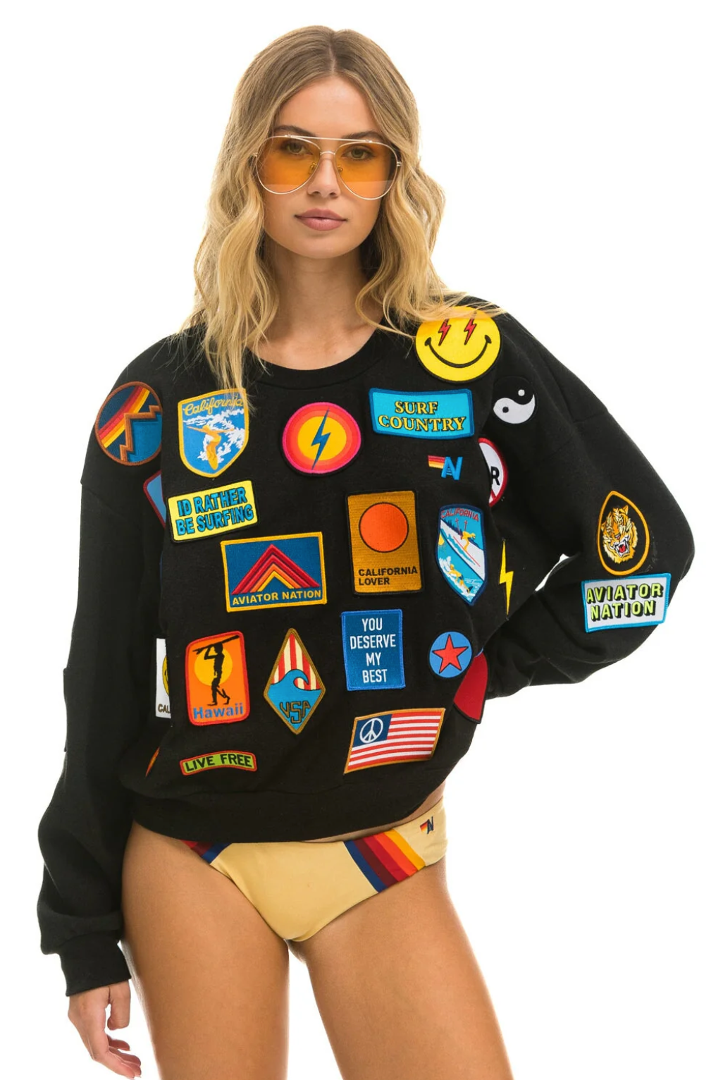 VINTAGE PATCH RELAXED CREW SWEATSHIRT - BLACK