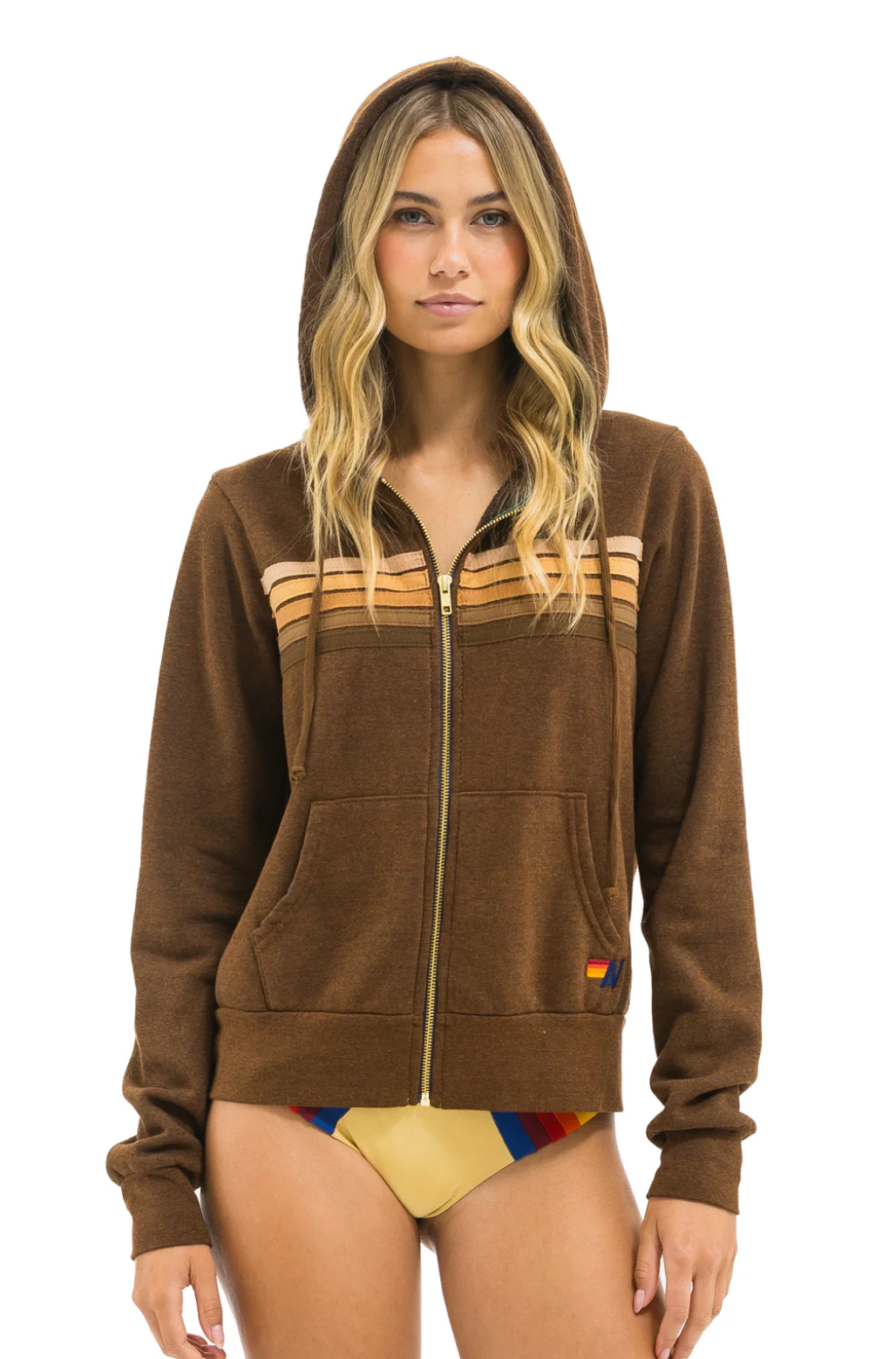 Aviator Nation 5 Stripe Zip Hoodie Chocolate Espresso