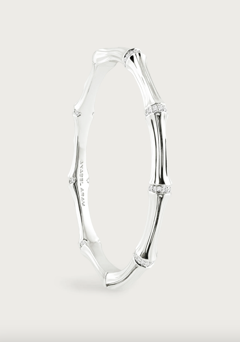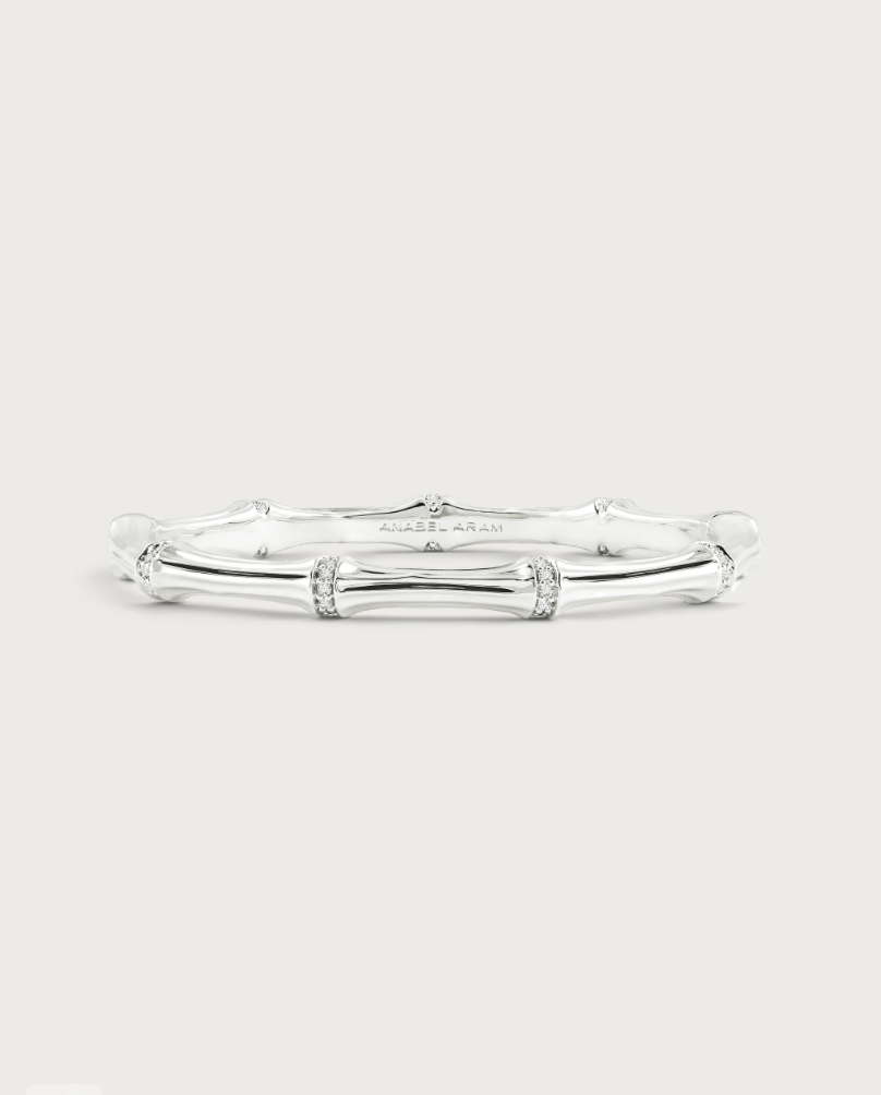 • Like the bamboo tree, which establishes an elaborate root system before rising to the sky, the Anabel Aram Bamboo Jewelry collection is a reminder of the human spirit’s patience, inner strength, and perseverance. A fresh twist on a favorite motif, the Bamboo collection’s chunky gold silhouettes adorned with delicate crystal pavé are modern basics.