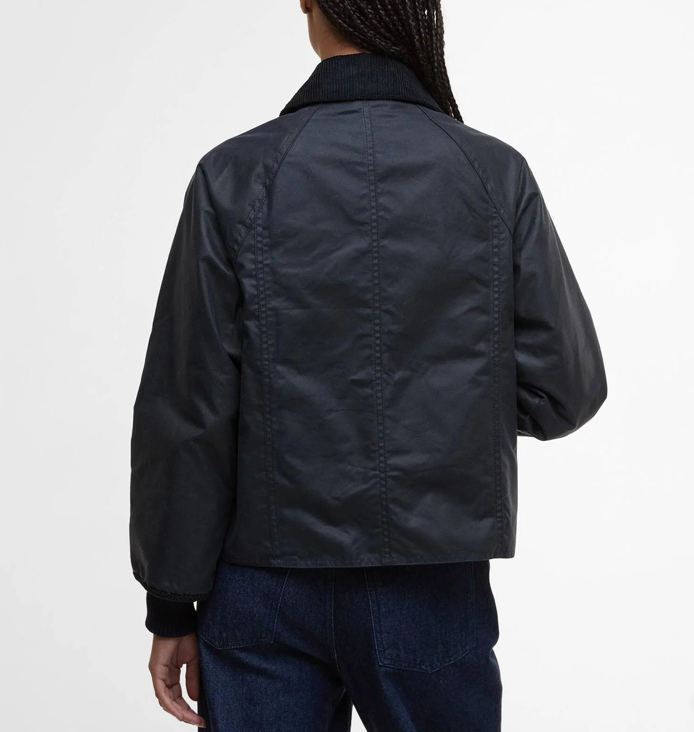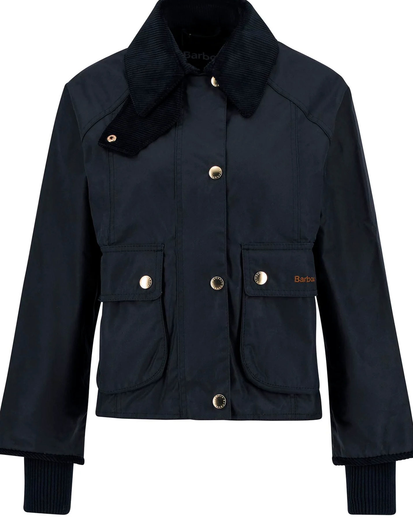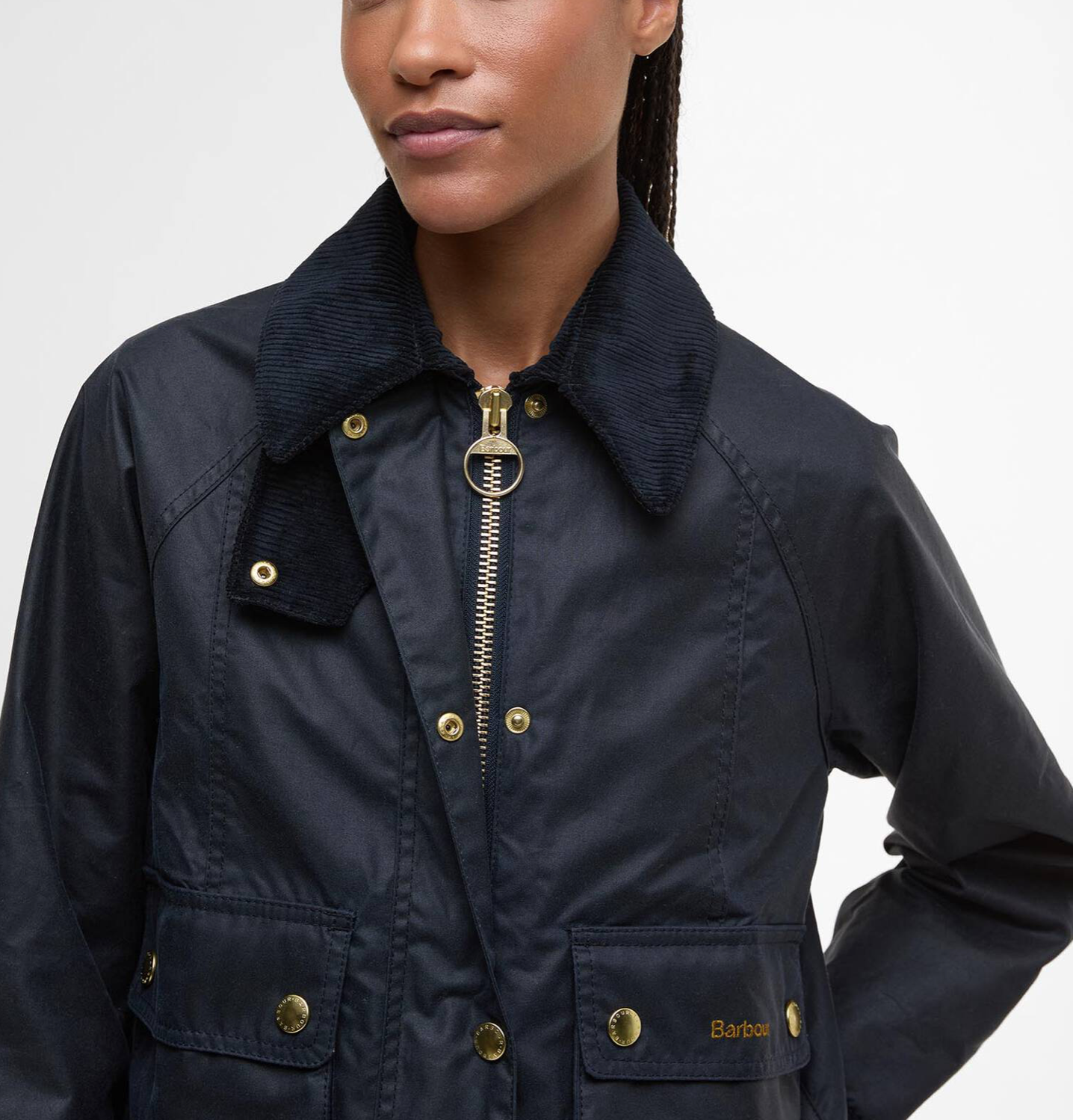 The Beadnell waxed jacket has been a part of Barbour's signature waxed jacket selection since 2010, offering a feminine, tailored rendition of the best-selling men's Bedale waxed jacket to the collection. This season, the Beadnell takes on a modern new look as the Barbour Cropped Beadnell Waxed Jacket displays oversized details featured on the original style. With large, gold-tone, branded snap buttons and the traditional saddle pockets, this style is complete with a cord collar and exaggerated elasticated cuffs for a contemporary touch.