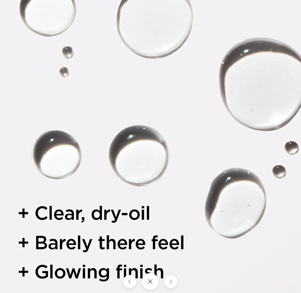 A hydrating dry-oil SPF 40 sunscreen spray with XOSM Technology™ for touchless reapplication that goes on clear with a glowing, barely there feel.