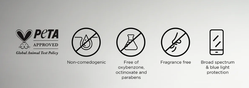 • Free of oxybenzone, octinoxate and parabens
