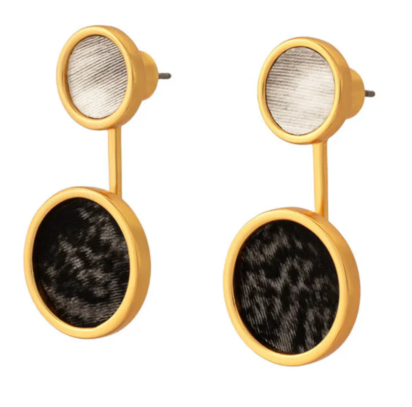 Natural beauty meets modern design in the Riley Bezel Jacket Earring. Crafted with all-natural goose and pheasant feathers, this style showcases subtle earth tones and organic patterning in a clean, mirrored layout. Designed for versatility, Riley can be worn as a simple stud for everyday ease or paired with its matching feather jacket for a bolder, high-contrast look. Timeless and grounded, it’s an effortless way to bring the outdoors in - with polish.