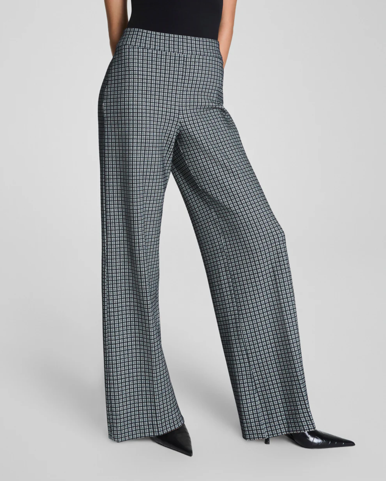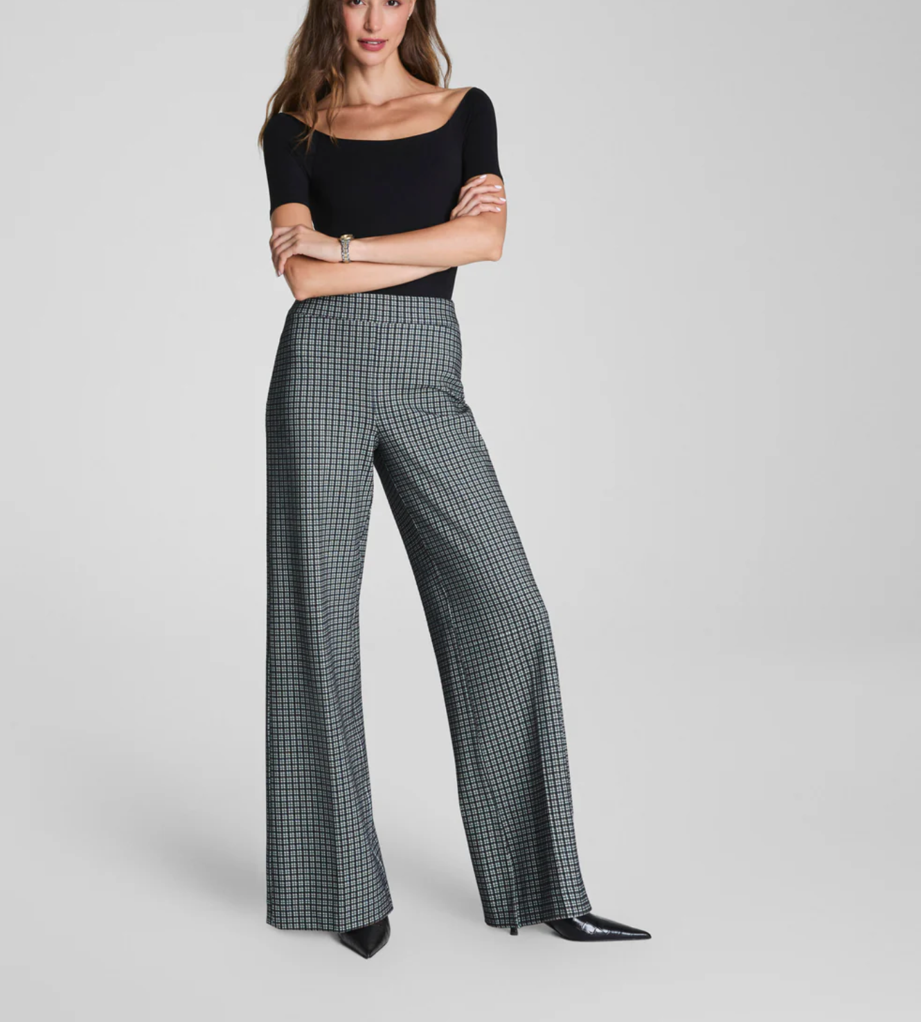 This smoothing pant comes in our premium ponte fabric with targeted compression built in, powered by SPANX CoreSure Tech™. With comfortable 4-way stretch and a high rise waist, this wide leg pant will have you feeling smooth from tummy to hip, and oh-so-comfortable throughout the wide leg. No zippers, no buttons, and no pockets (so no bulk!) at the hips—all for the ultimate smoothing effect.