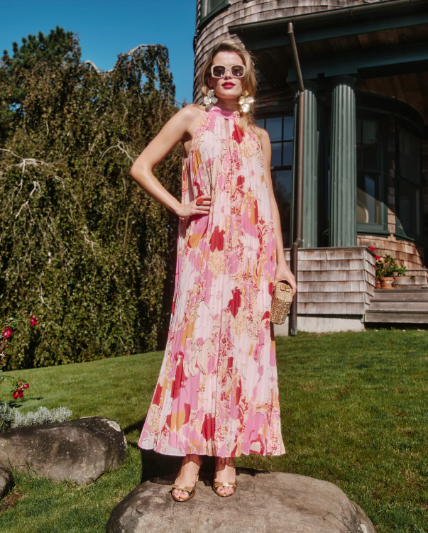 Frances Valentine Slim Pleated Maxi Dress Wild Tulip