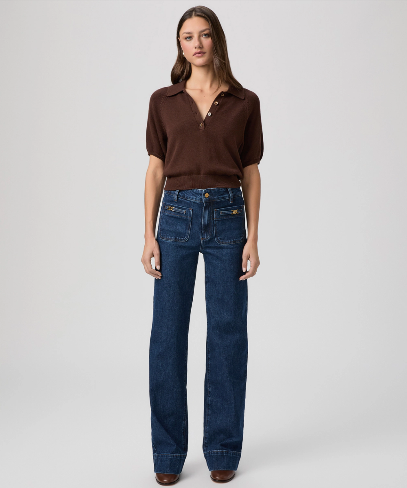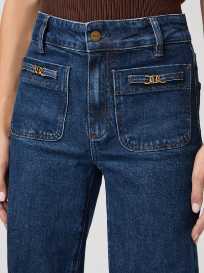 Sasha is our high-rise wide leg with a fitted top block and a slightly relaxed fit. In a dark wash with gold hardware novelty patch pockets, this pair is crafted from heritage-inspired denim with a soft hand-feel and a hint of stretch.