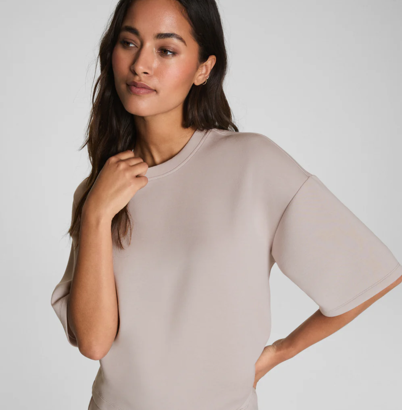 Our SPANX AirEssentials® Relaxed Tee is made with our ultra-drapey spacer fabric that's breathable, light-as-air, and oh-so-soft. This versatile short-sleeved shirt features a relaxed fit with 4-way stretch for total comfort. Sleek, stylish, and comfortable, this throw-on-and-go tee will take you anywhere and everywhere.