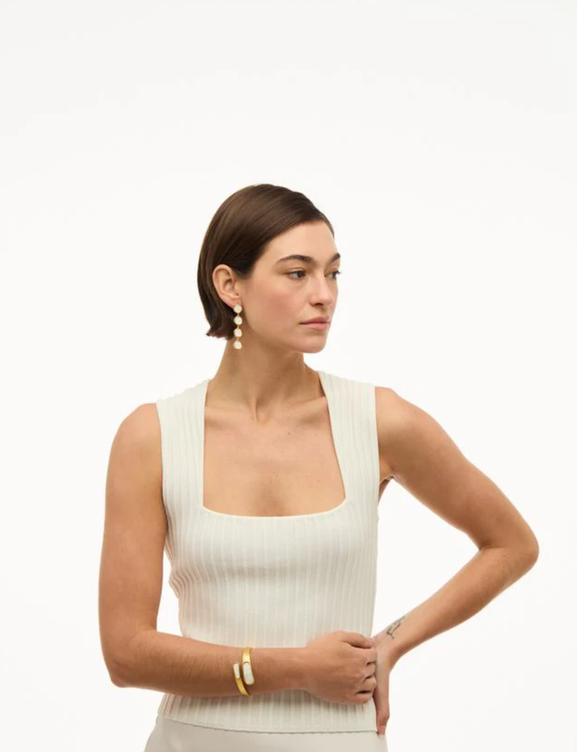 Vibrant and artfully unbalanced, the Alexis Bezel Hinge Cuff features an asymmetrical feather layout that plays with contrast and color across each bezel. A striking mix of gold, pure white rooster feathers - creates dynamic visual movement, while maintaining harmony through a thoughtfully curated palette. Set in a sleek, hinged silhouette for ease and comfort, Aaliyah brings bold energy and refined craftsmanship together in a statement cuff that’s effortlessly wearable.